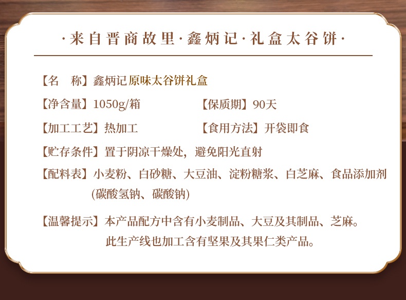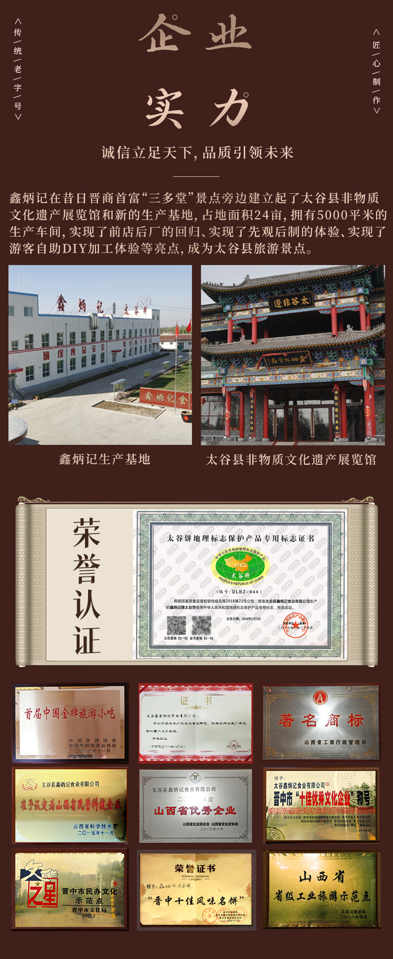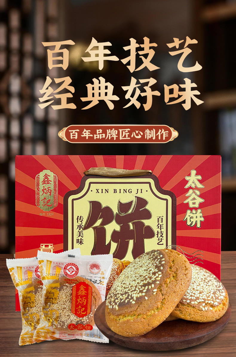 - 鑫炳记始于1859年,历经五代传承,传承百年工艺,从选取原料到烘烤出炉,都严格遵守祖传古方,让百年太谷饼焕发新的魅力。
