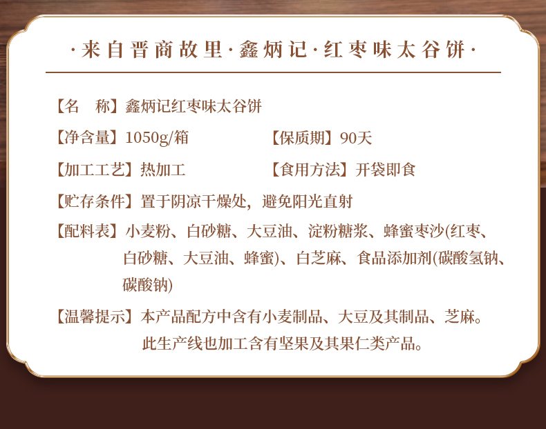 鑫炳记原味红枣味太谷饼礼盒1050g山西特产零食小吃点心传统糕点送礼A