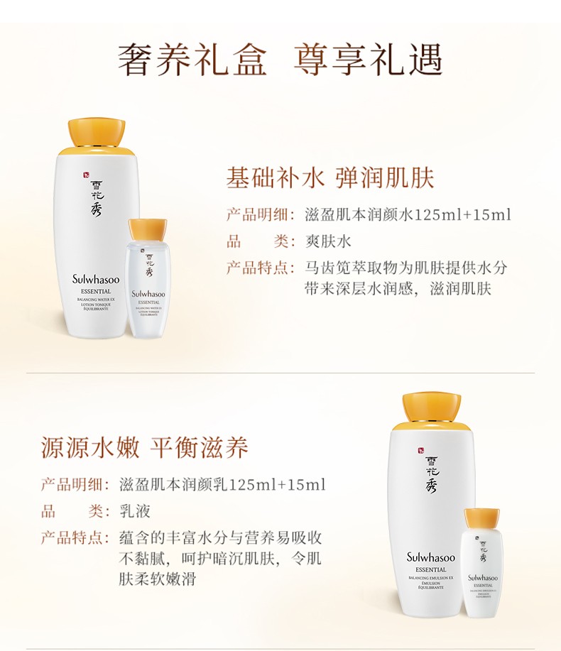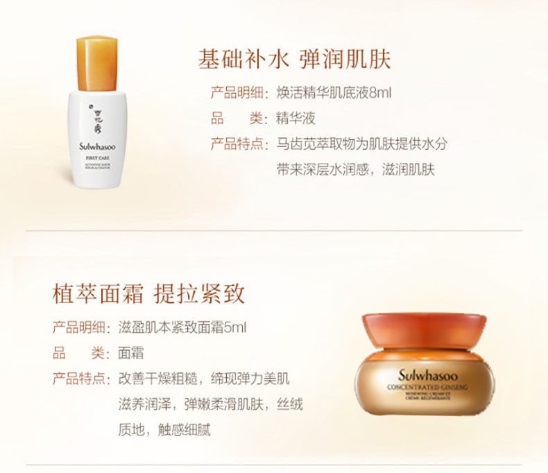 Sulwhasoo雪花秀 滋盈肌本润颜水乳套盒 小样随机 韩国