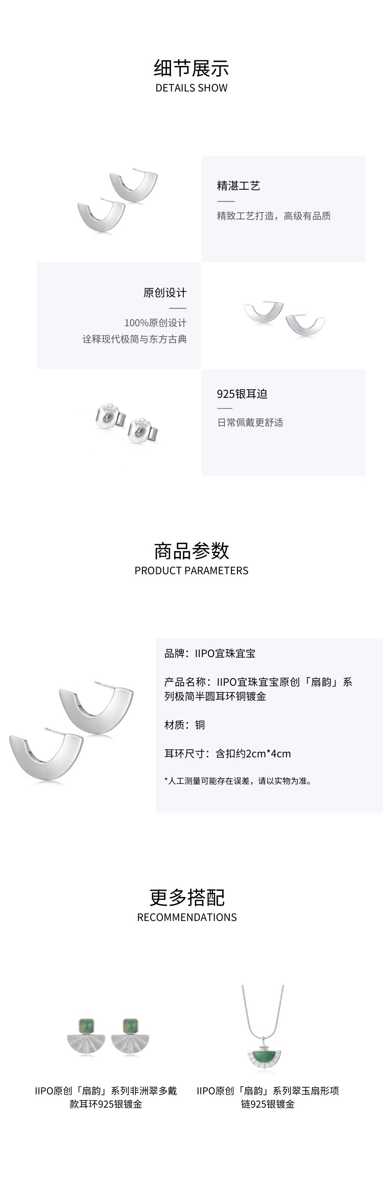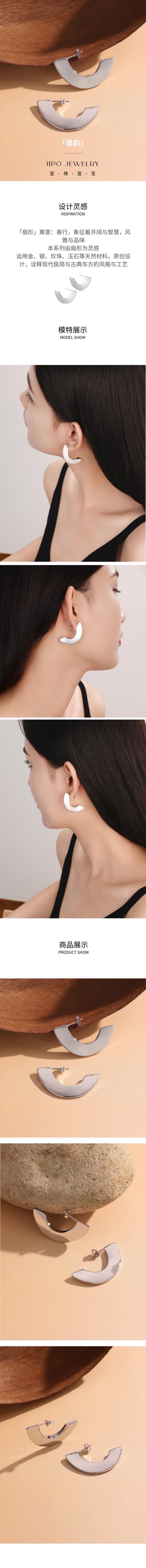 IIPO宜珠宜宝原创「扇韵」系列极简半圆耳环铜镀金(礼盒装)