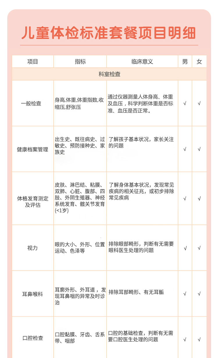 【北京爱康庇利积臣医疗中心】儿童体检标准套餐(6-18岁)