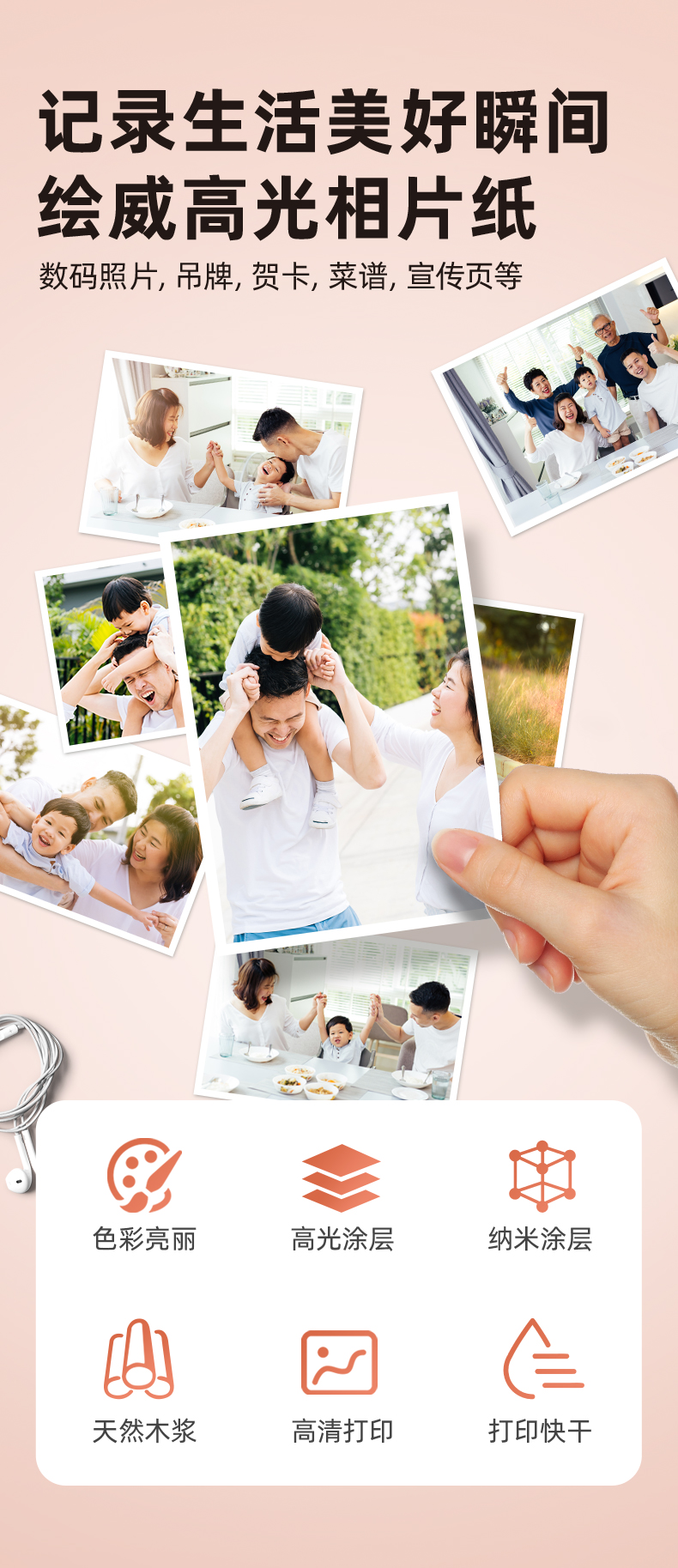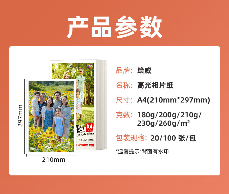 绘威 A4相纸180g高光照片纸 相片打印纸彩色喷墨照片 适用惠普/佳能打印机 高光相纸A4 100张/包