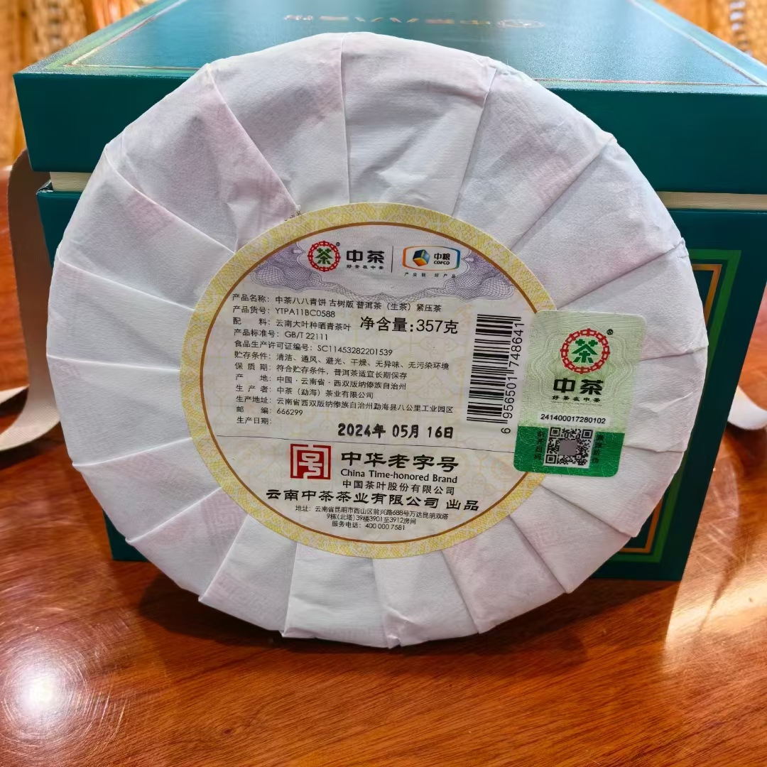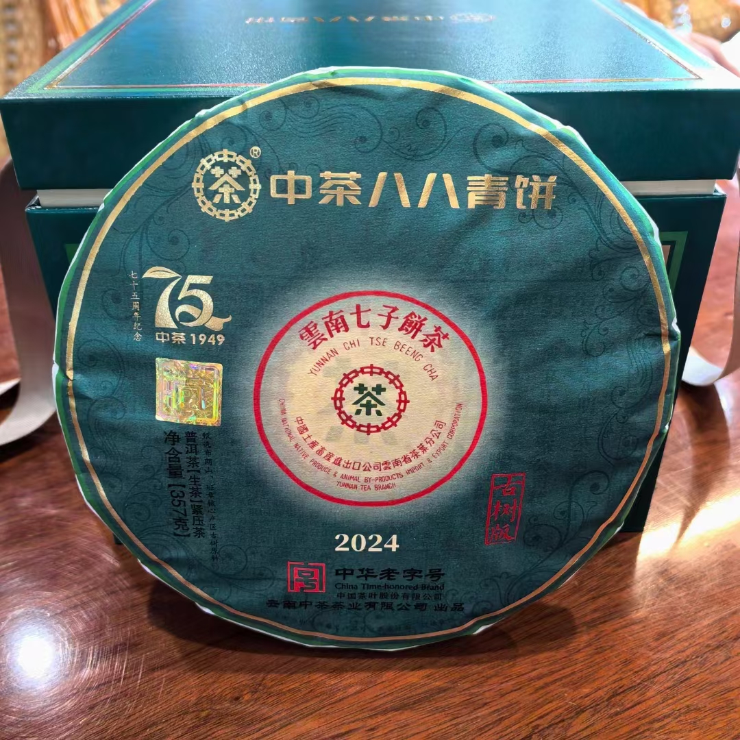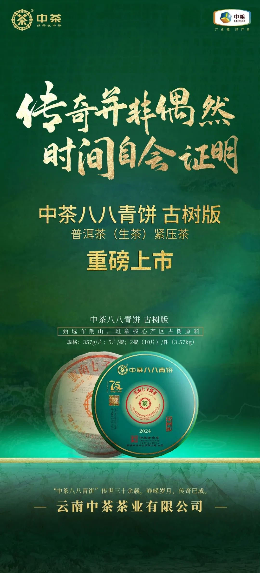中茶八八青饼2024年古树版时光臻翠盛世之青357克/云南干仓直发