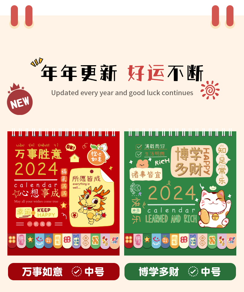 🔥2024新款好运台历🎉实用与美貌于一身新年台历💫开启美好新的一年❗ 正面日历,背面备忘录+打卡📆一物两用,好运伴随让生活更加有序。 颜值即正义,价格美到无法呼吸