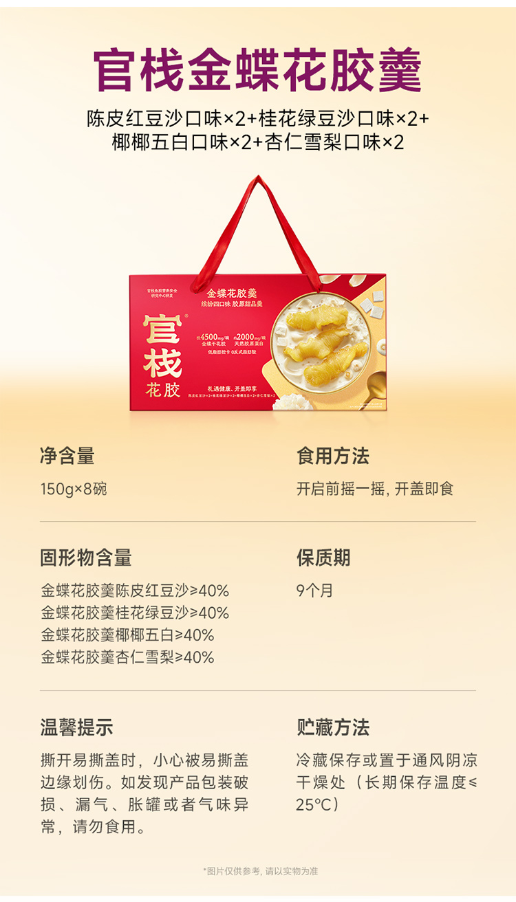 【新品上市】官栈养肤金蝶花胶羹150g×8-提箱款 商品图6