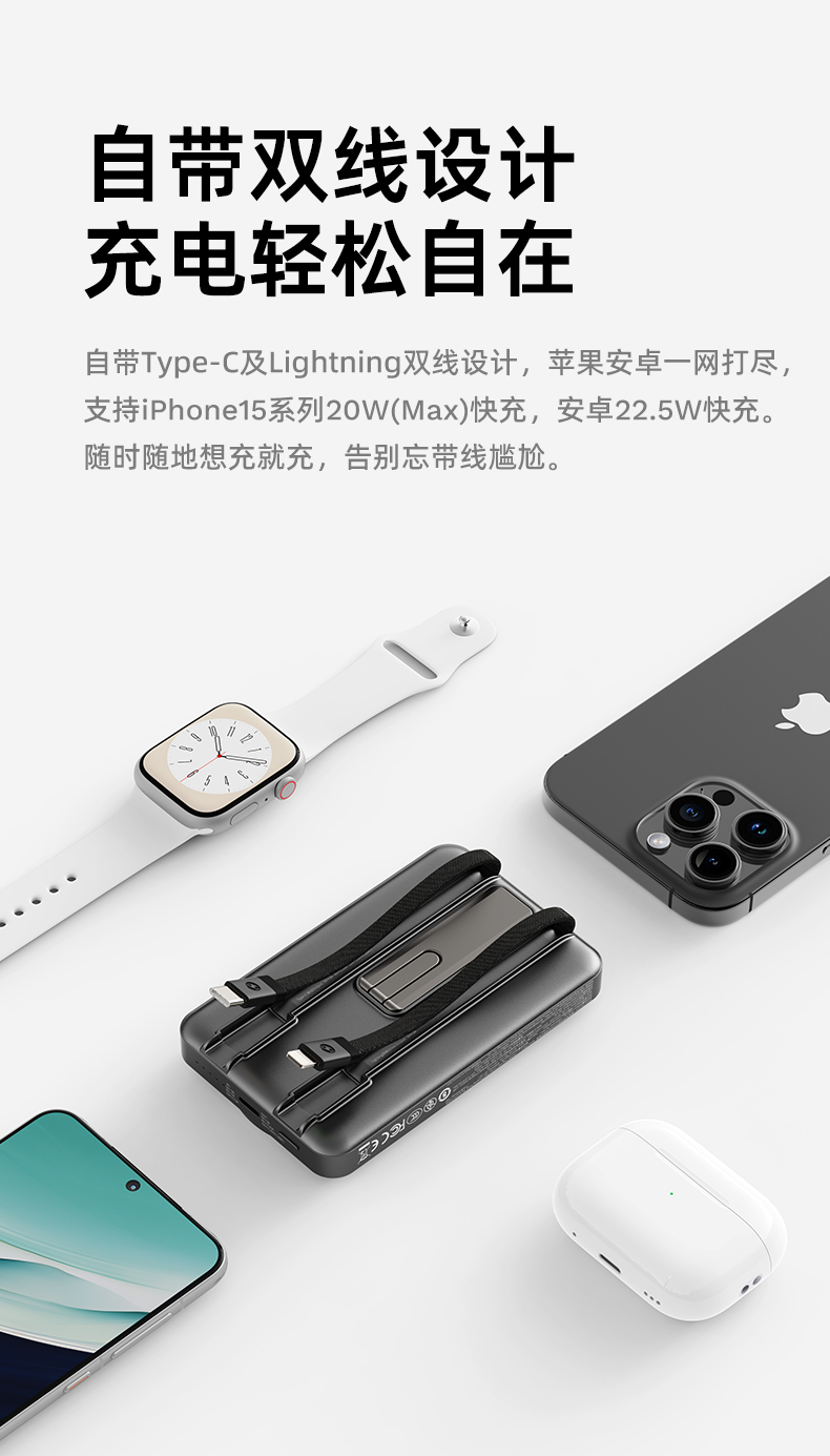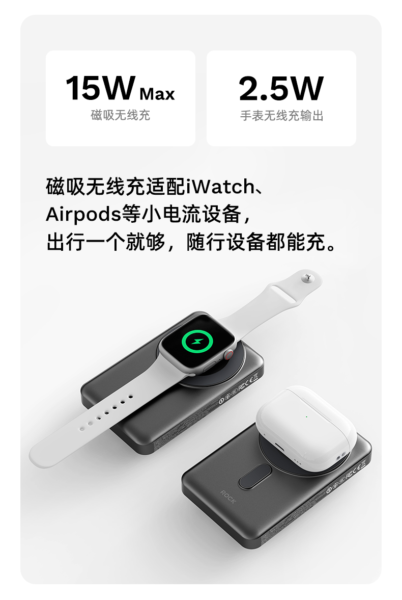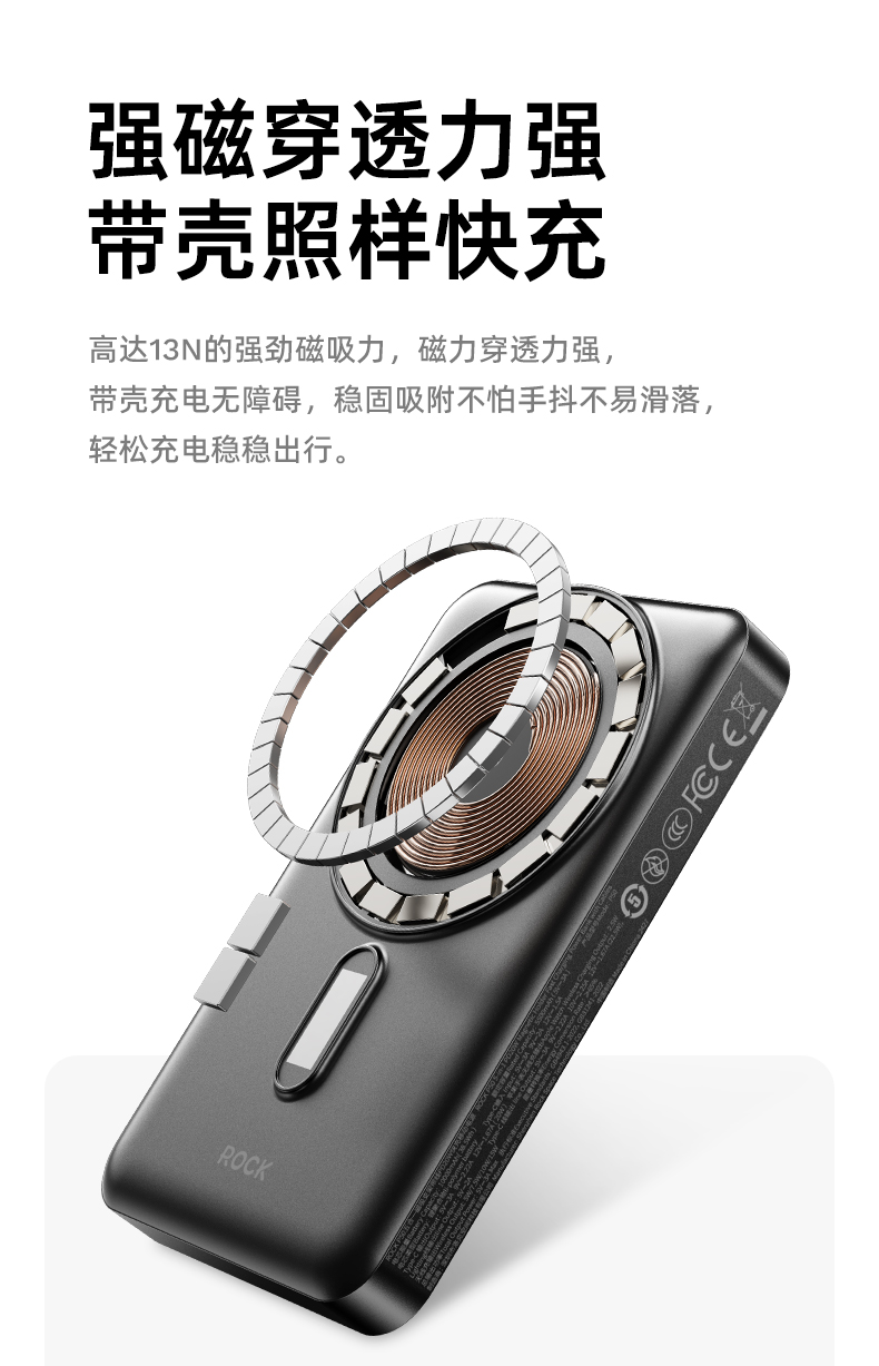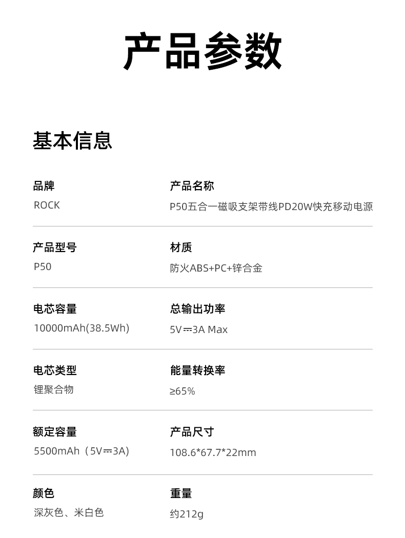 ROCK P50五合一磁吸支架带线PD20W快充移动电源