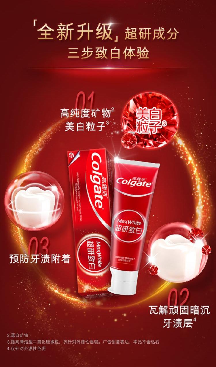 疯抢中!!【高露洁Max White超研致白牙膏】有效去除牙渍美白 咖啡奶茶抽烟人士必备 100g*3支装