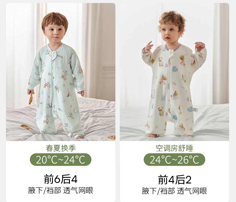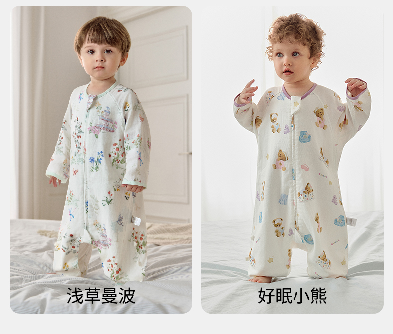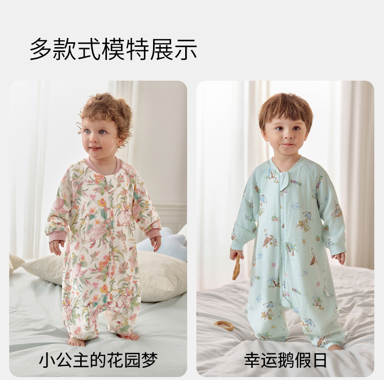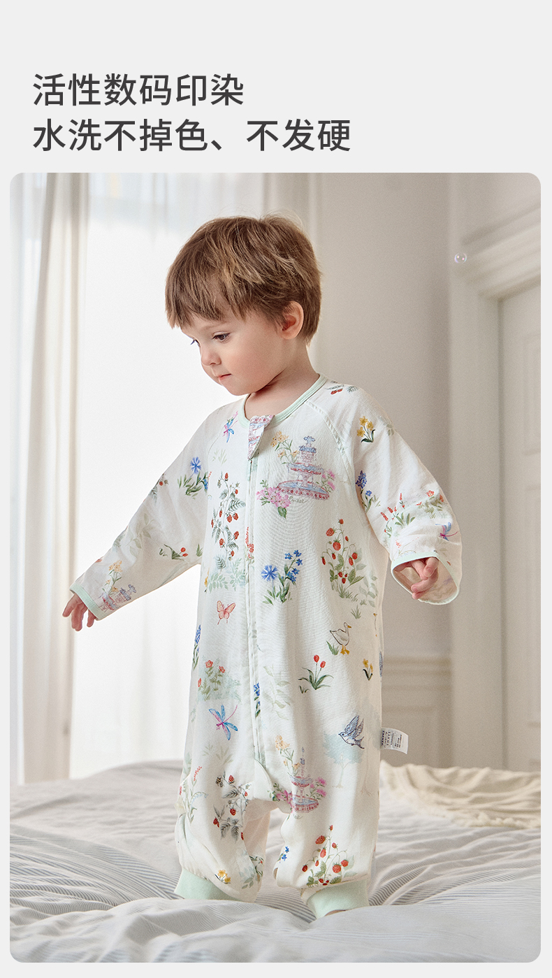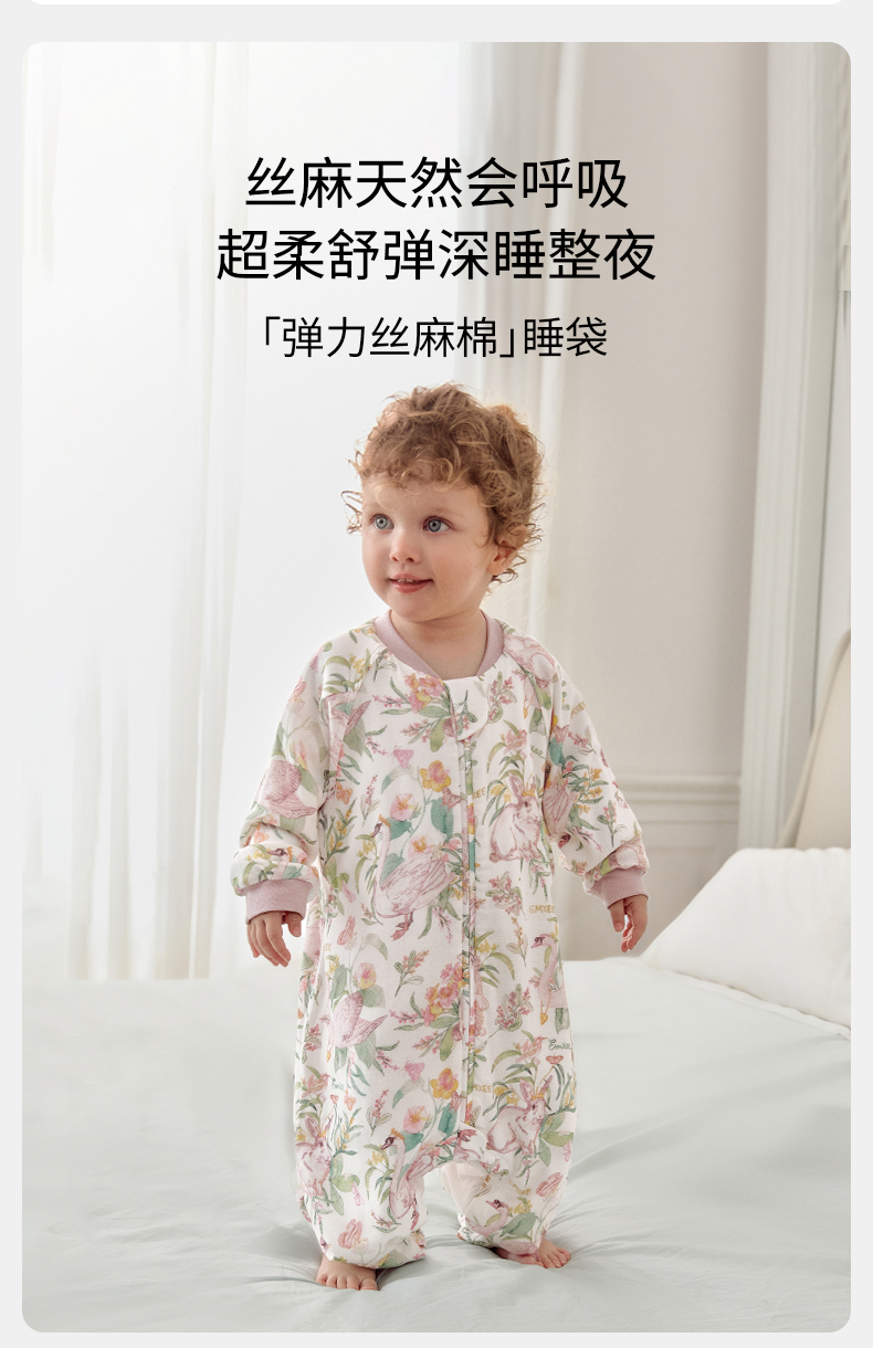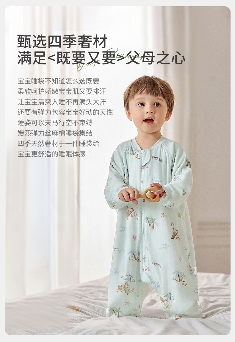 【宝宝安睡】嫚熙婴儿睡袋弹力丝麻棉春秋睡袋四季通用长袖儿童分腿睡袋防踢被