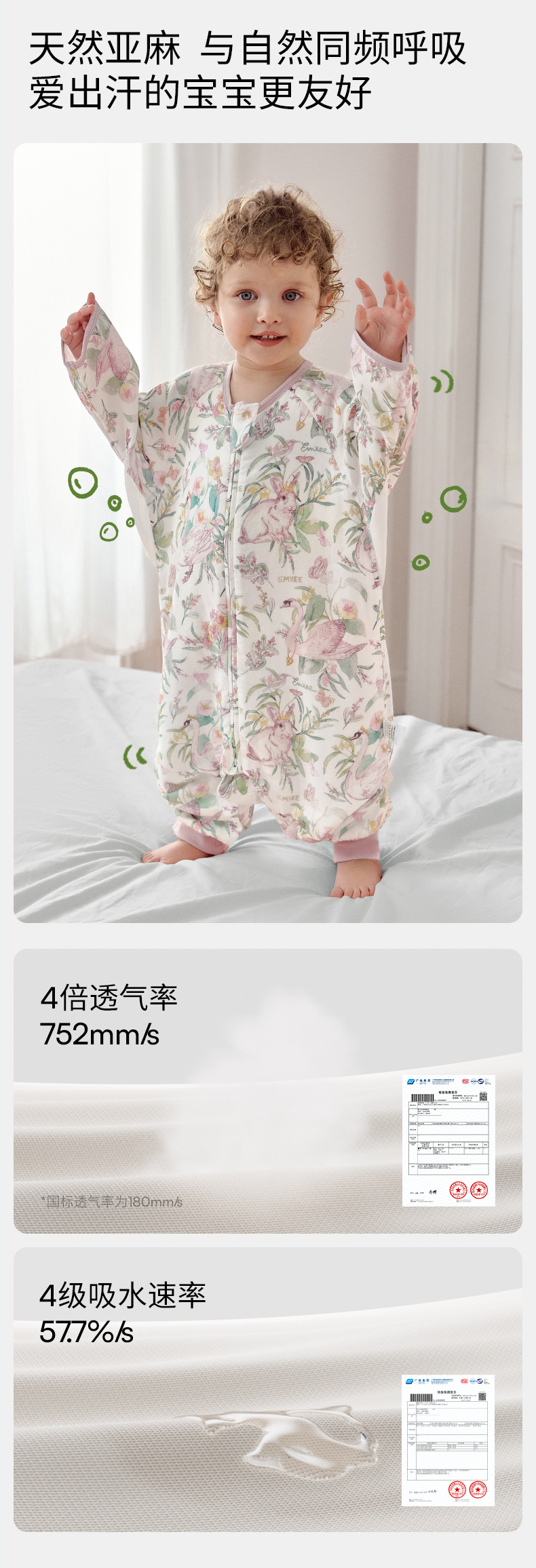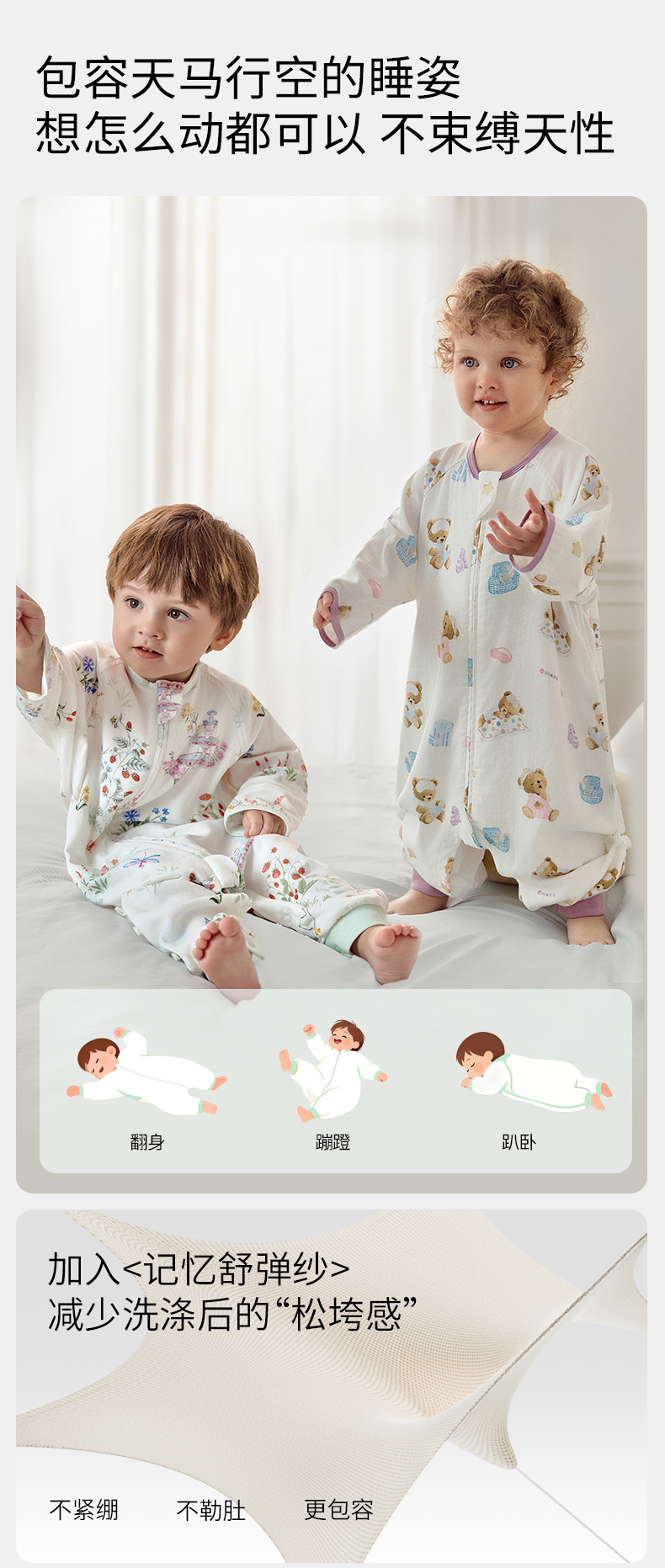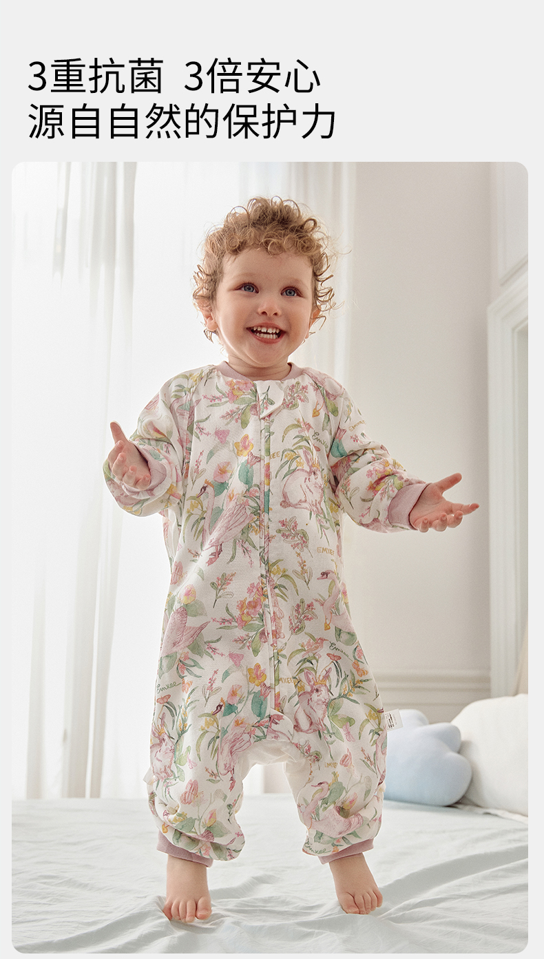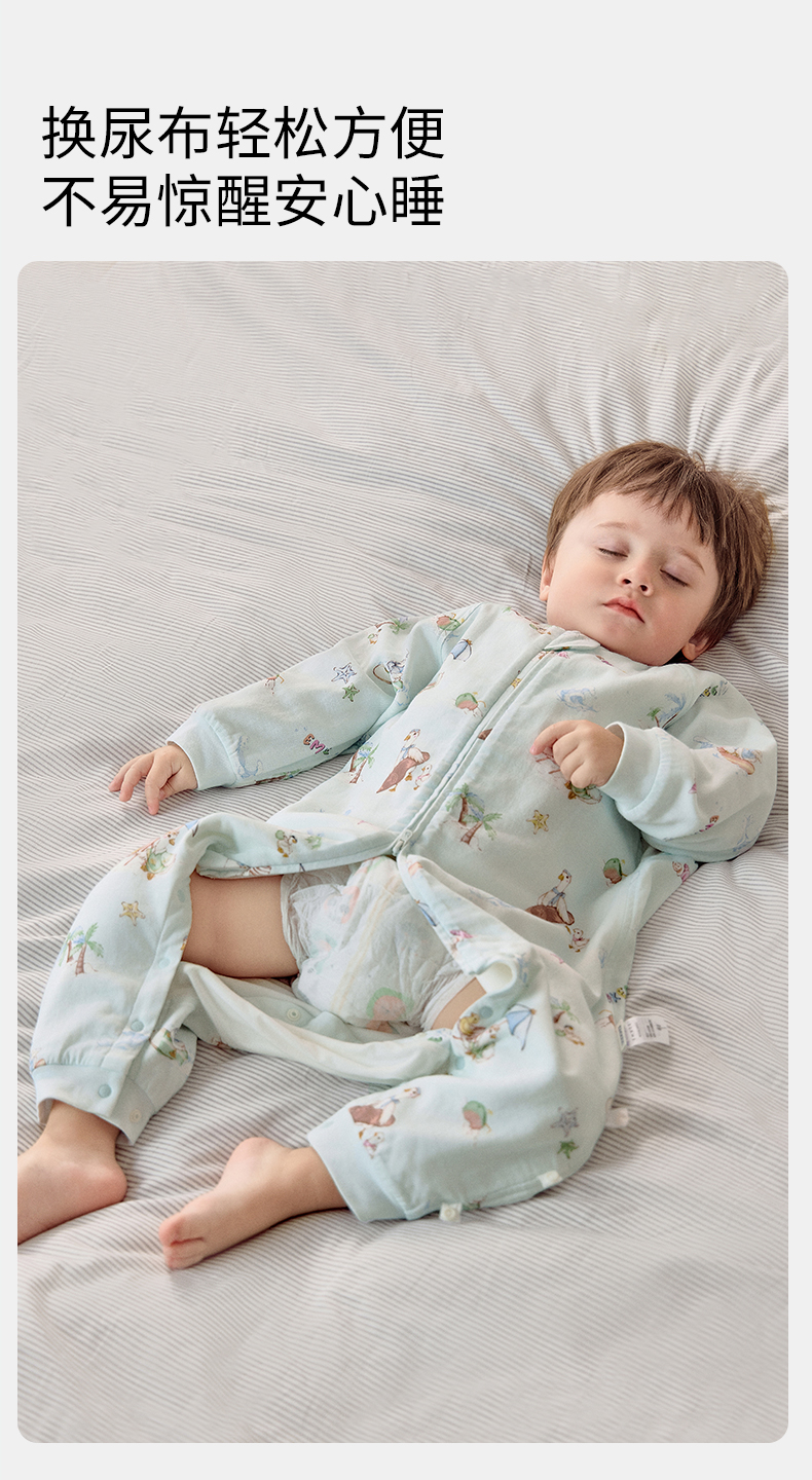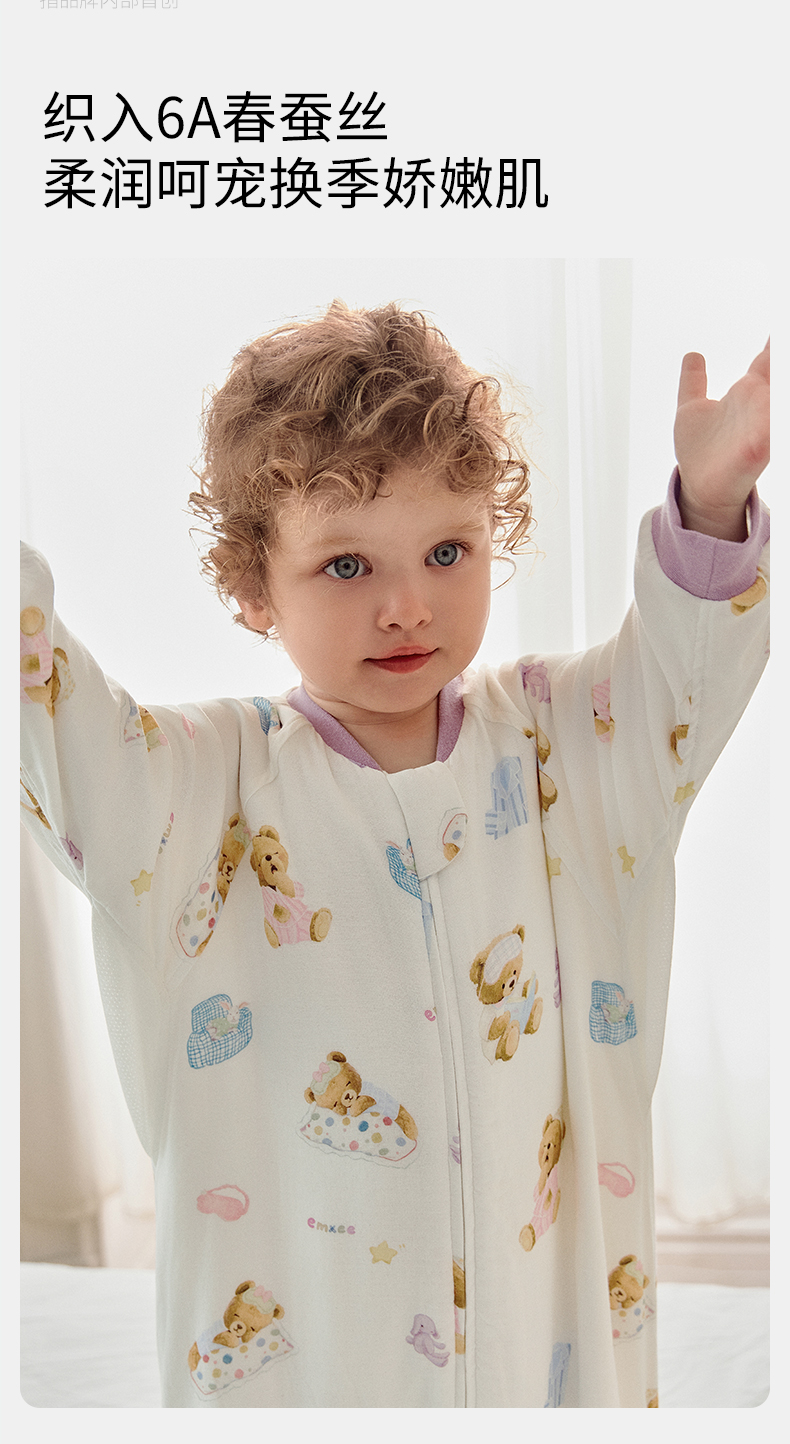 【宝宝安睡】嫚熙婴儿睡袋弹力丝麻棉春秋睡袋四季通用长袖儿童分腿睡袋防踢被