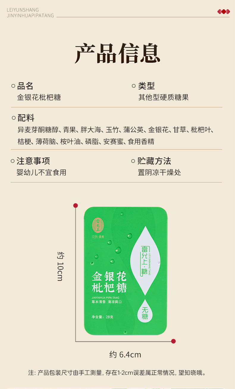 【雷允上】金银花枇杷糖 / 茯苓薄荷糖 1盒装