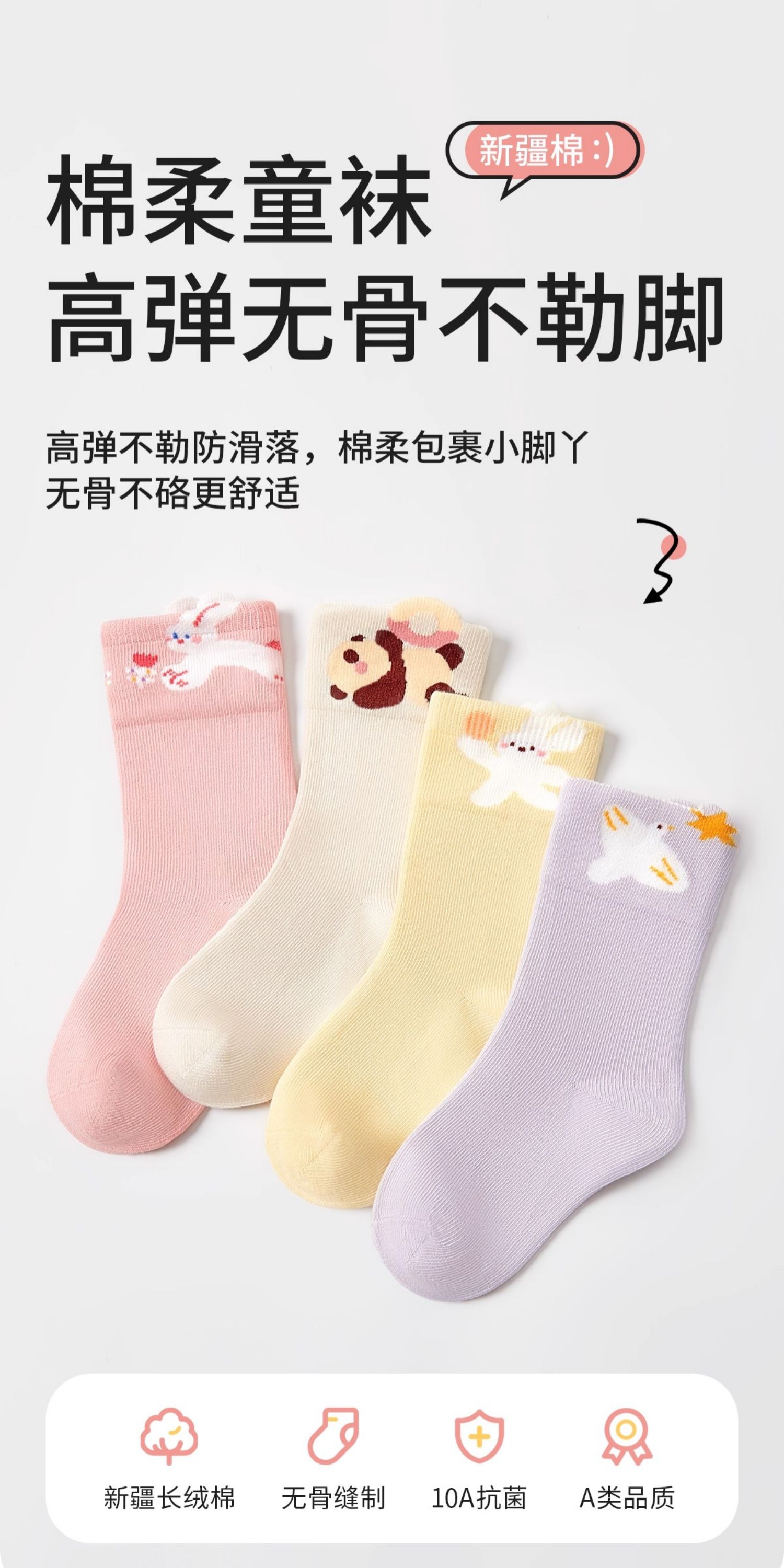 科巢儿童袜子女童秋冬新款宝宝棉纯a类无骨1-3岁抗菌中大童中筒袜