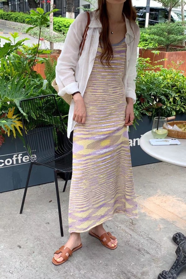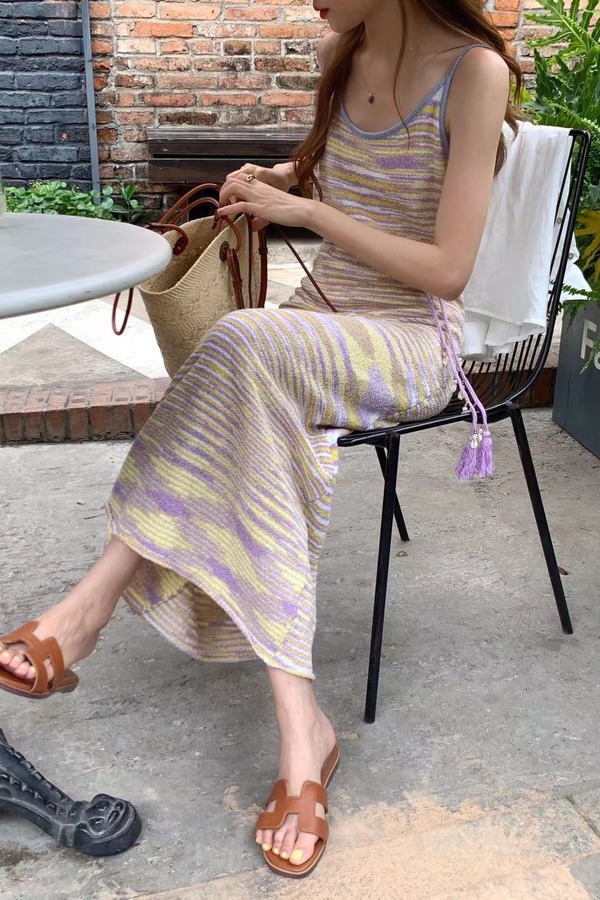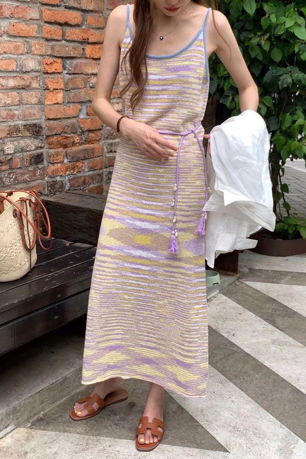 SIA SAYLOR 落日紫条纹针织吊带连衣裙 18472
