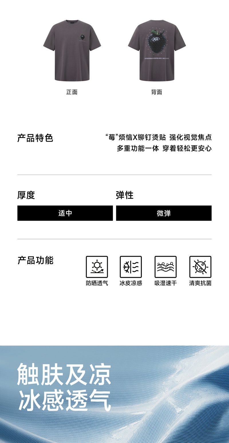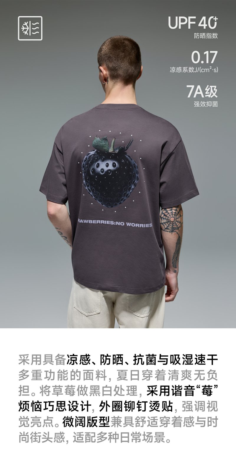 【商场同款】CHINISM赤尘 草莓印花凉感t恤男夏季潮牌速干短袖