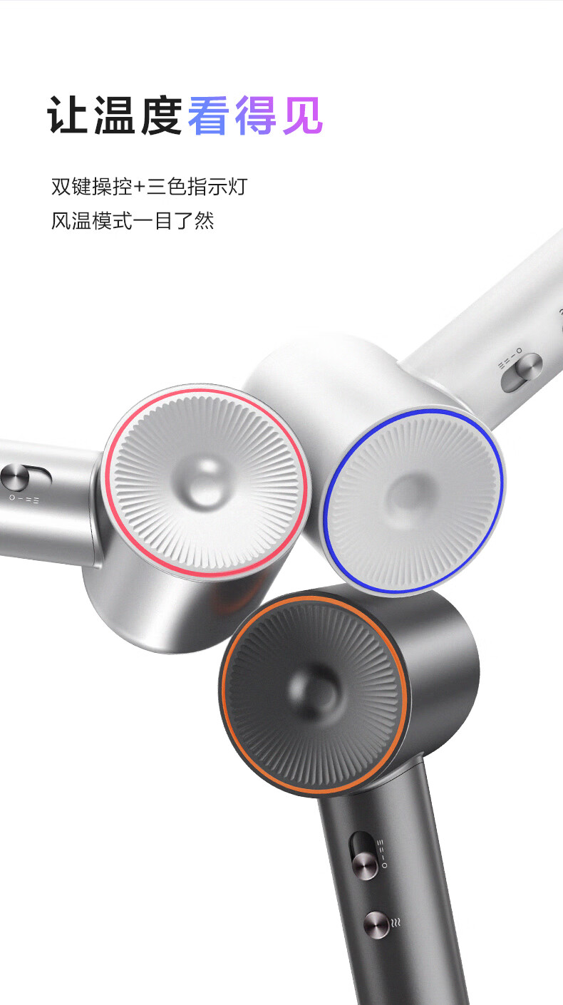 美的(Midea)高速吹风机 家用吹风筒 大风力速干 高浓度等离子护发电吹风FG208-星光紫 100130303790