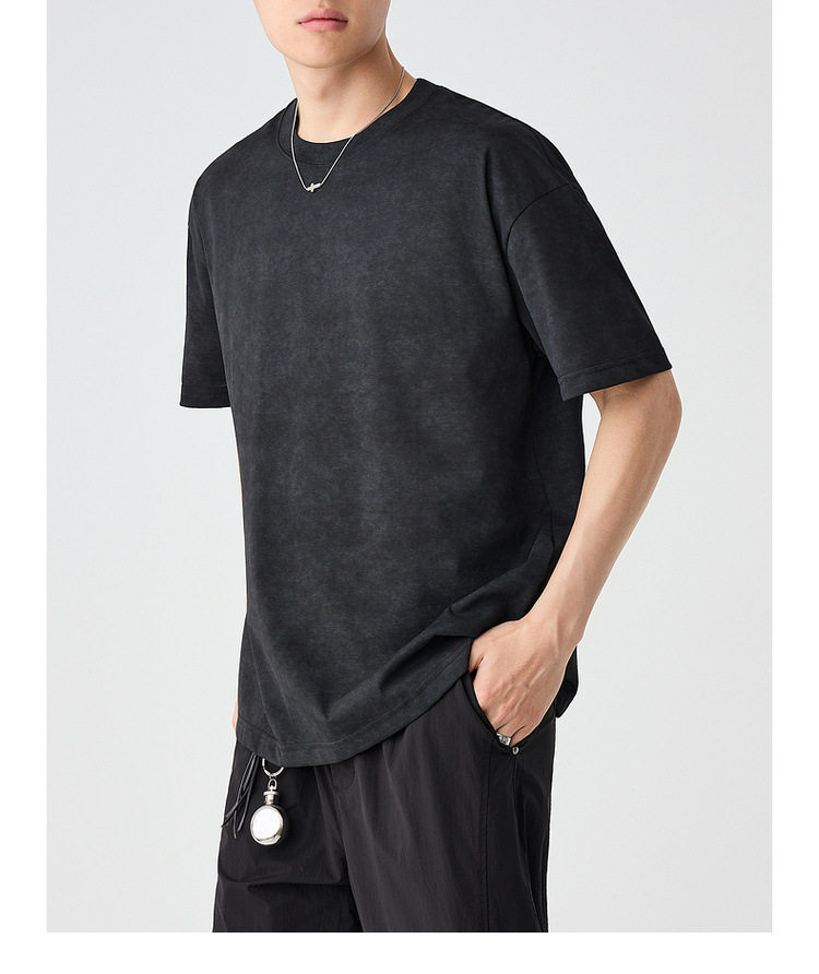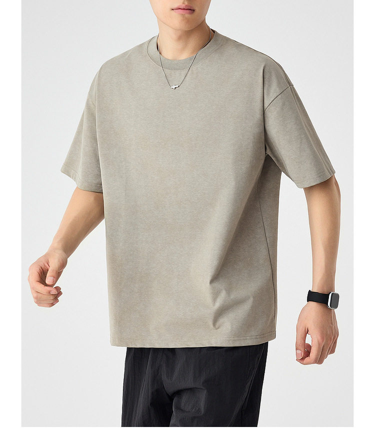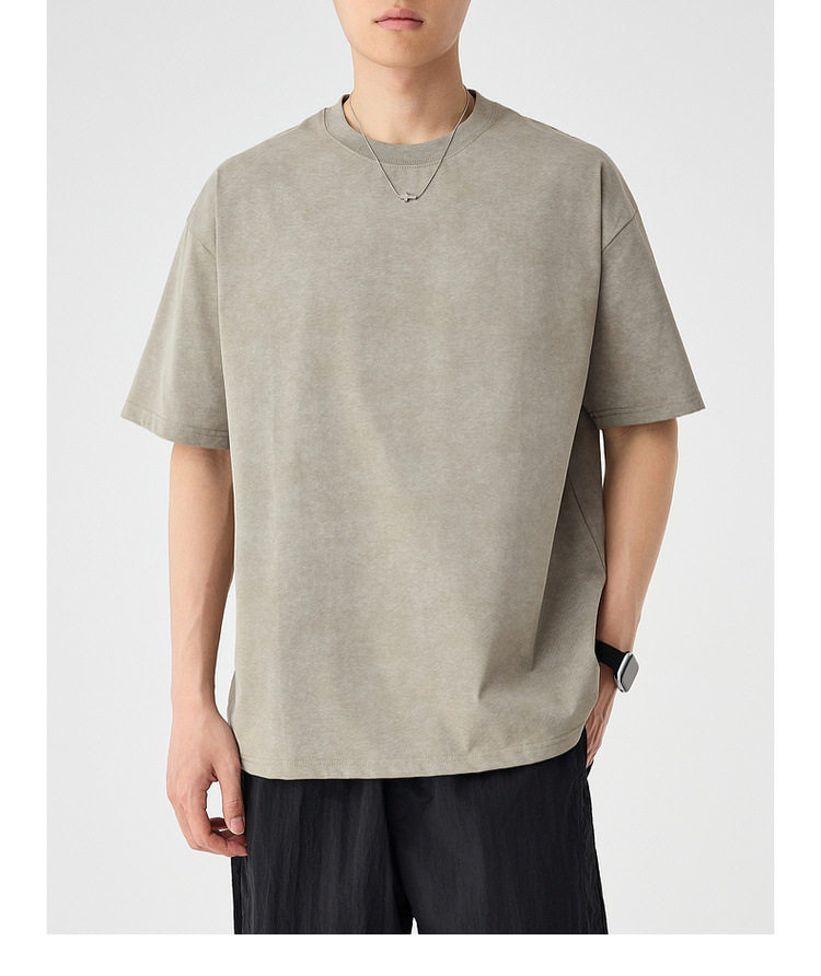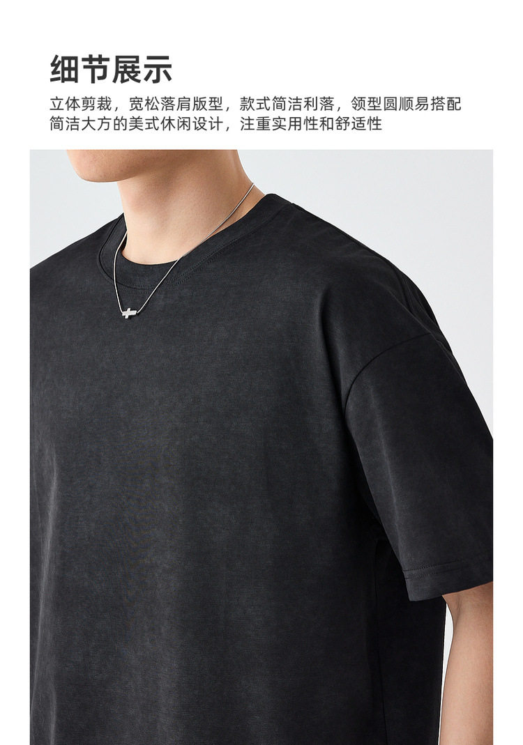 墨麦客美式复古洗水短袖t恤男2026夏季新款圆领宽松男士T恤71909.