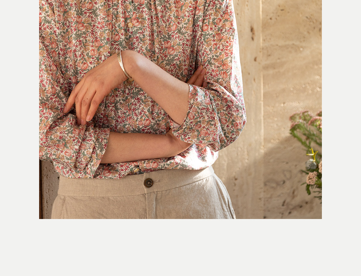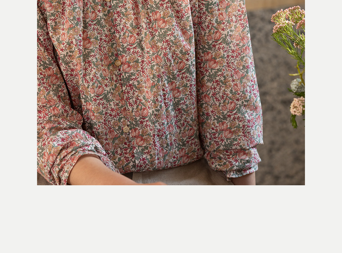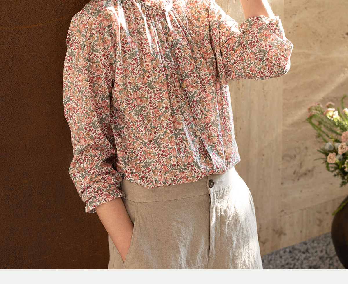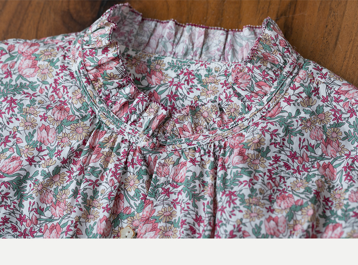 牧衣游原创进口Liberty印花棉衬衫春季新款粉色碎花气质小衫 植愈