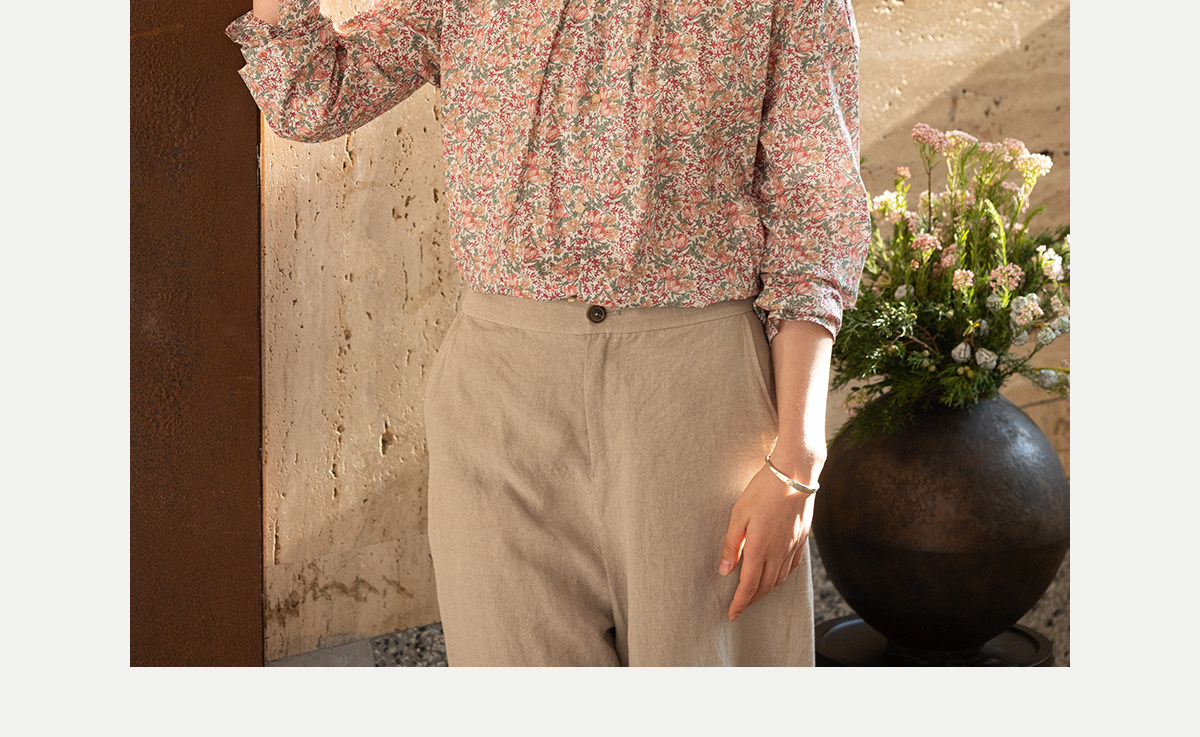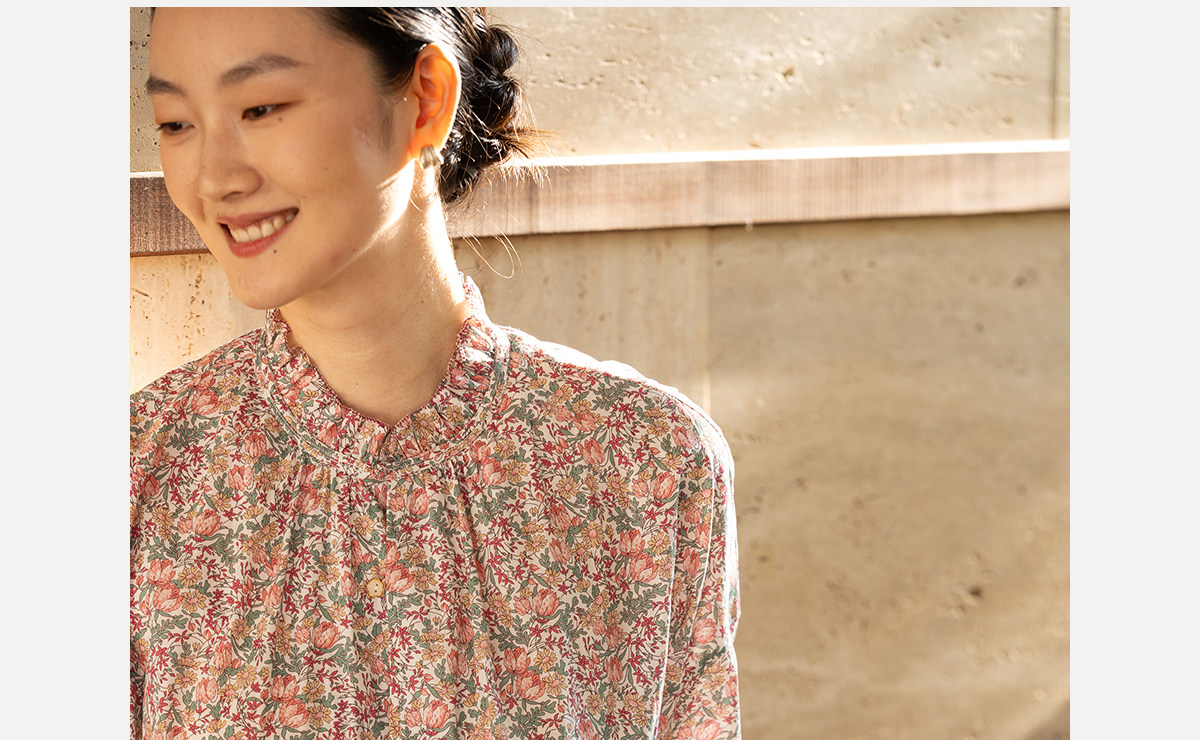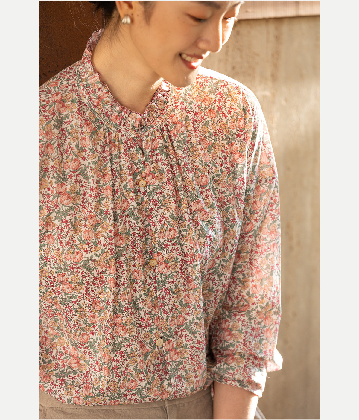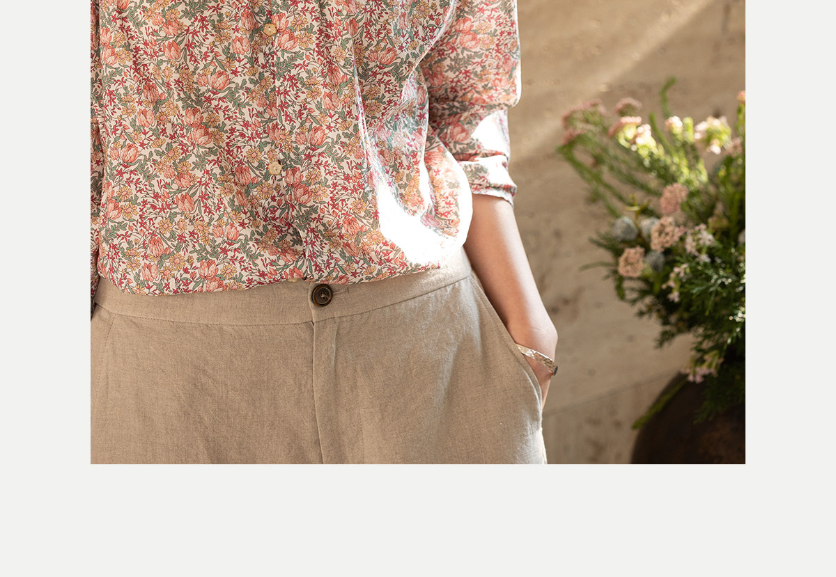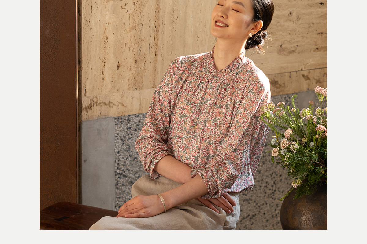 牧衣游原创进口Liberty印花棉衬衫春季新款粉色碎花气质小衫 植愈