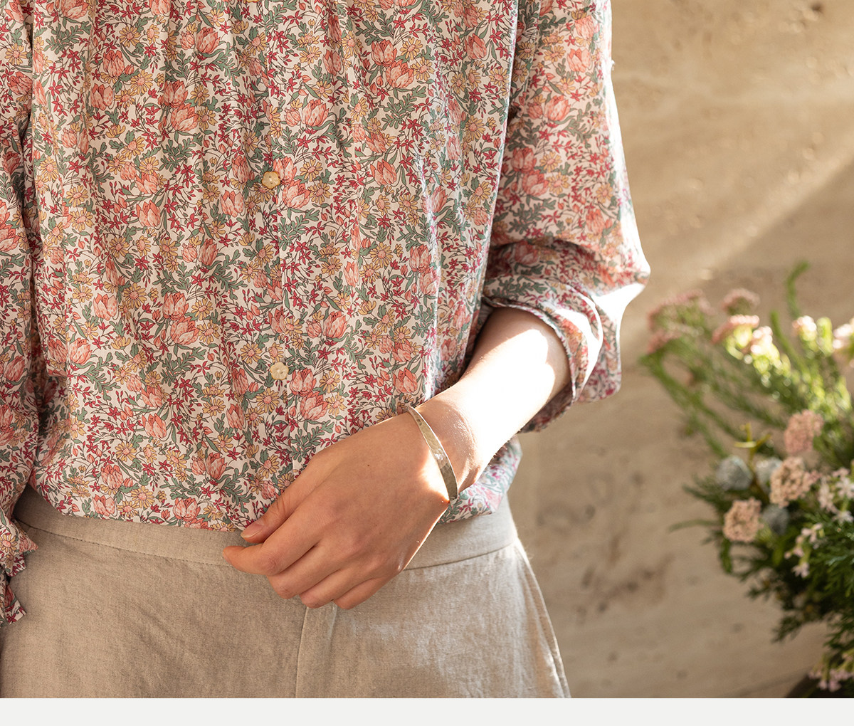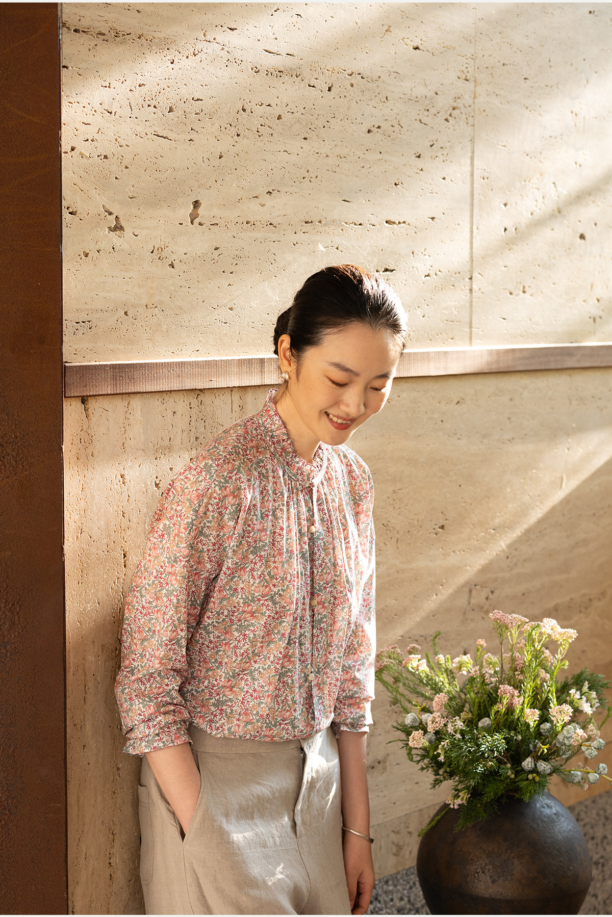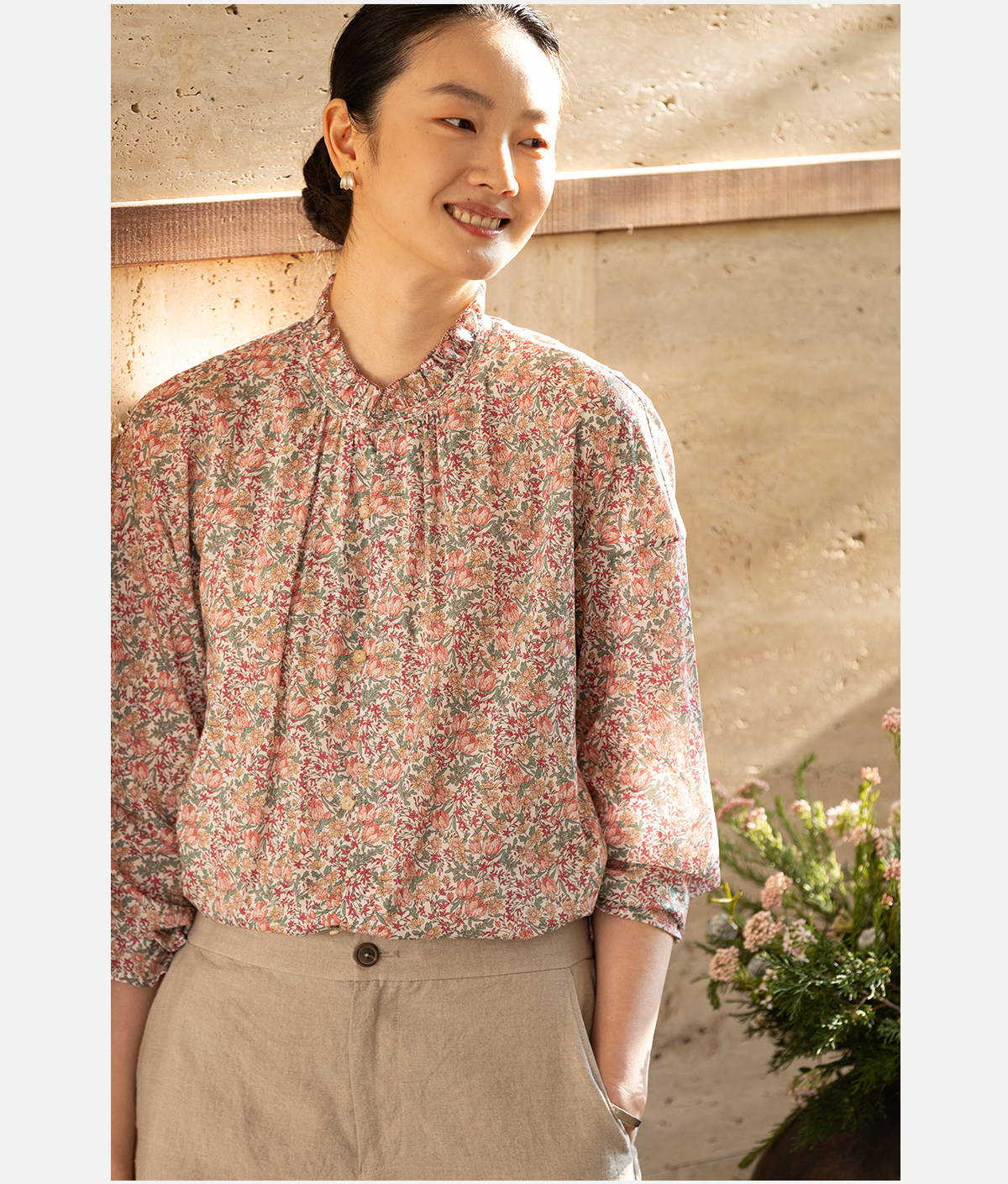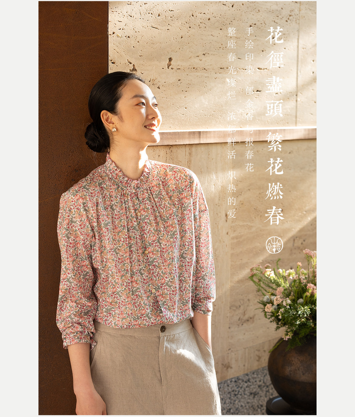 牧衣游原创进口Liberty印花棉衬衫春季新款粉色碎花气质小衫 植愈