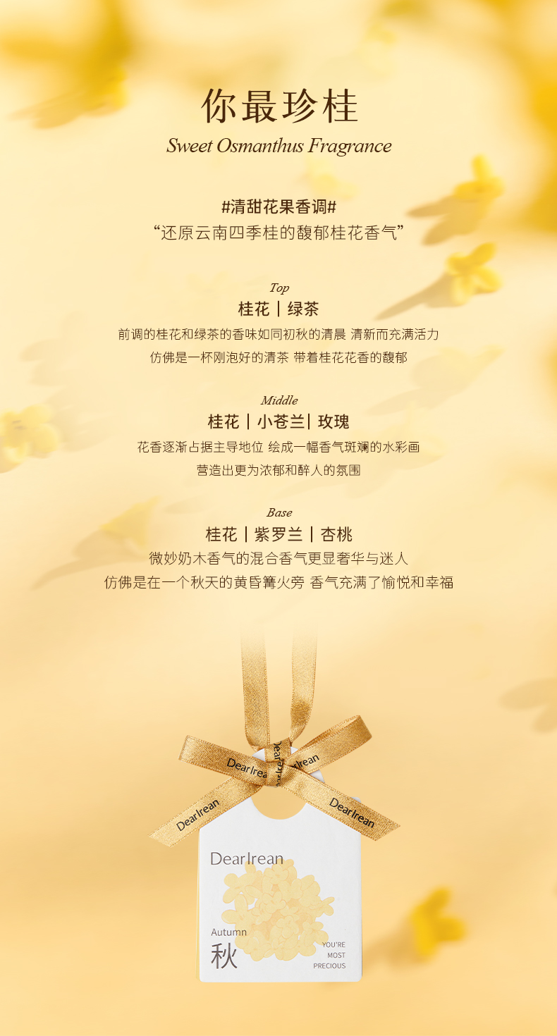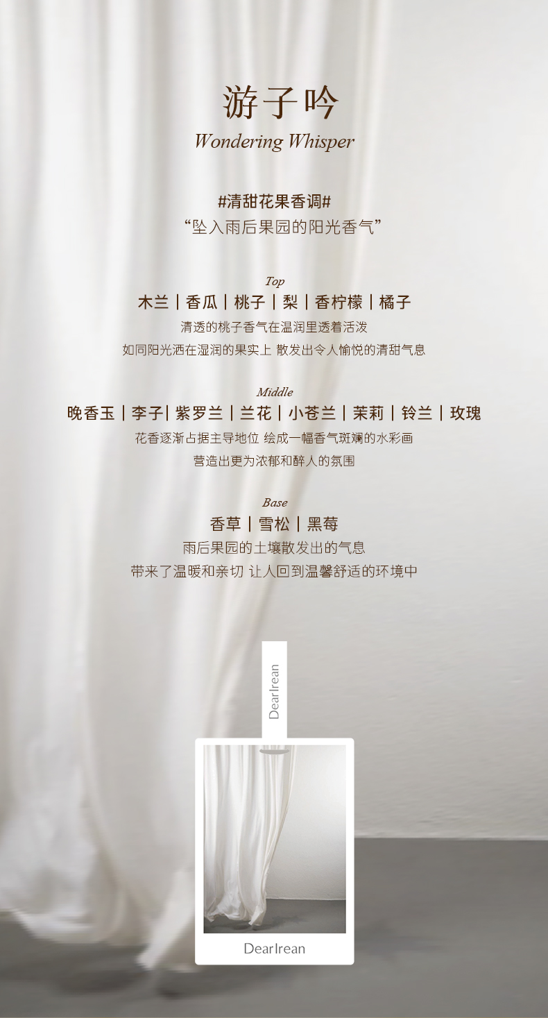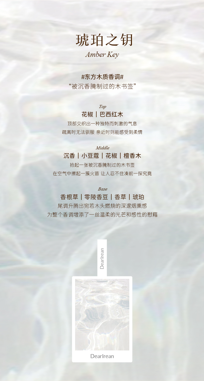 - DearIrean 独特艾琳,高定香氛生活品牌,拥有体•研究所,品牌致力于将高定香氛带入生活,同时倡导“以香之名,带给生活美好方式”的品牌理念,传递精致女性的爱、独立、自信。