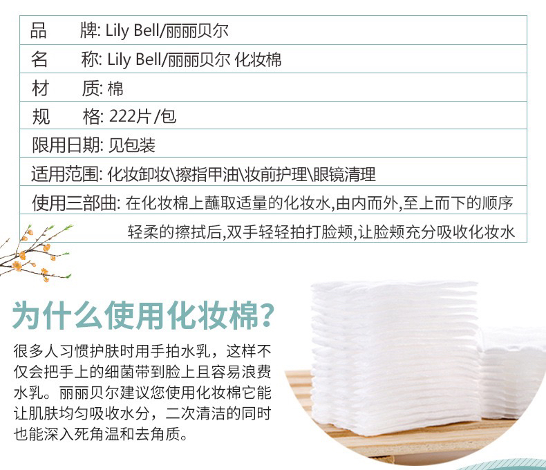 LilyBell丽丽贝尔化妆棉222片(拍1袋不包邮)