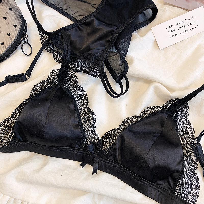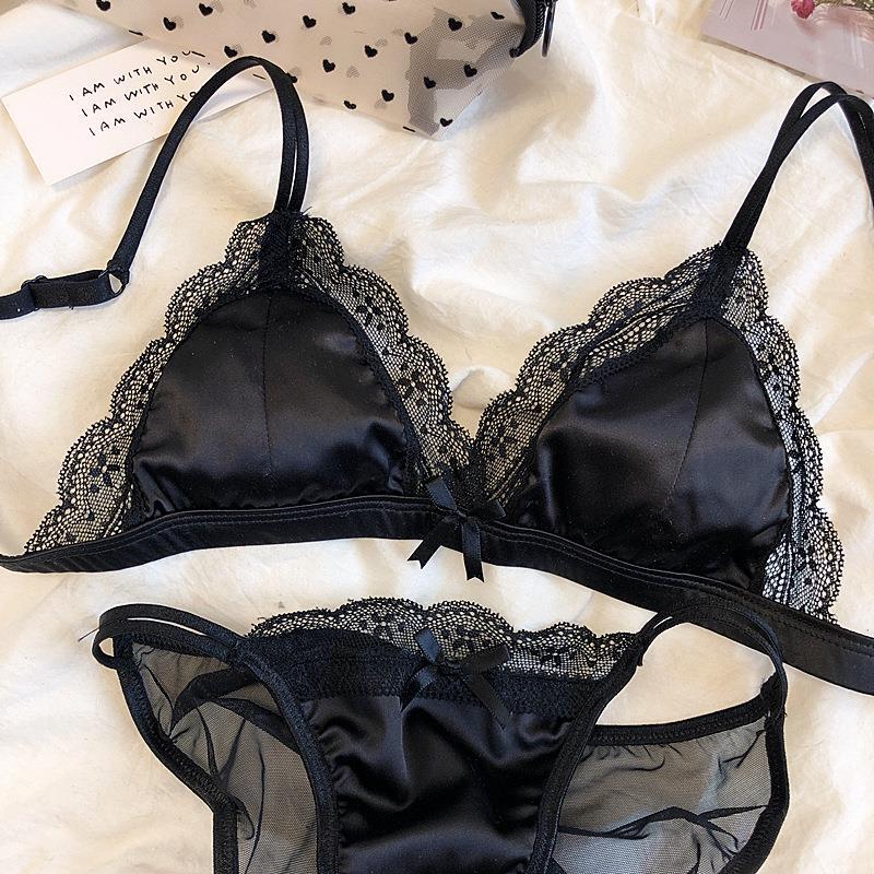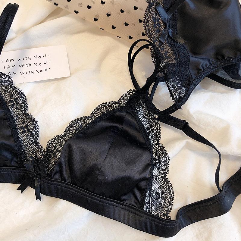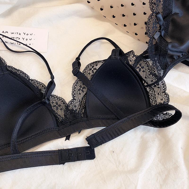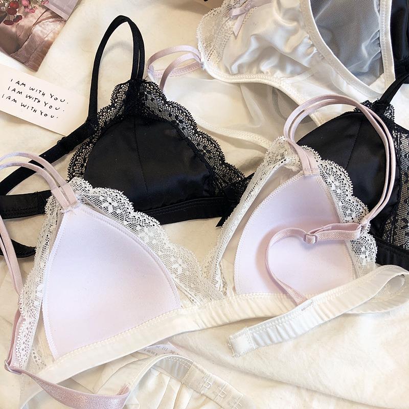 法式少女内衣女小胸薄款性感蕾丝无钢圈三角杯显小上托文胸套装夏2025新款小红书爆款