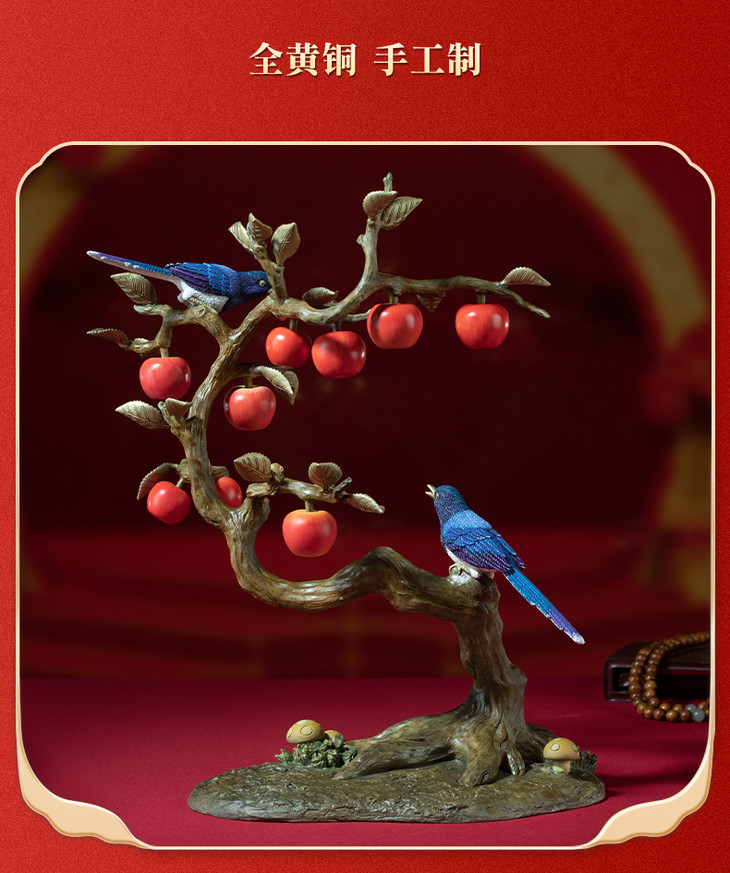 铜师傅 铜摆件《平安喜乐》客厅桌面办公室中式家居新款柿子装饰