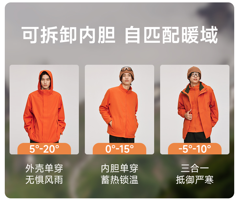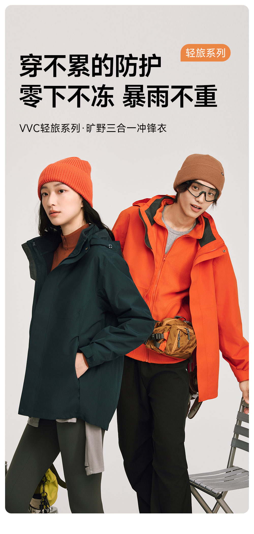 VVC轻旅冲锋衣女2025新款三合一外套男轻量化旅游防风防水登山服