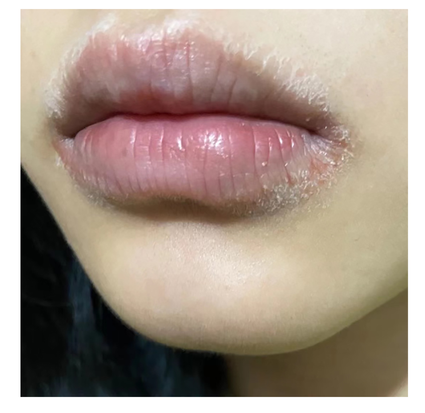 发干→起皮→裂开受损引发唇焱→色沉+更干