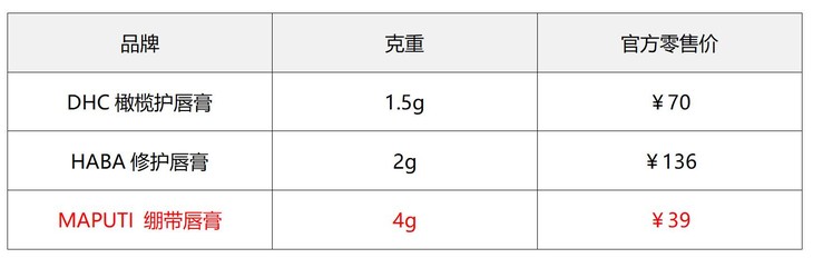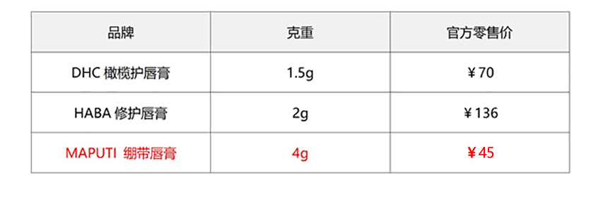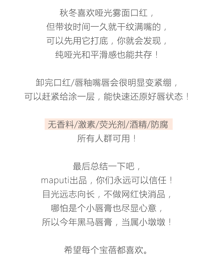 maputi润唇膏从成分和配方来说,都是值100+的段位,但是现在才39元!