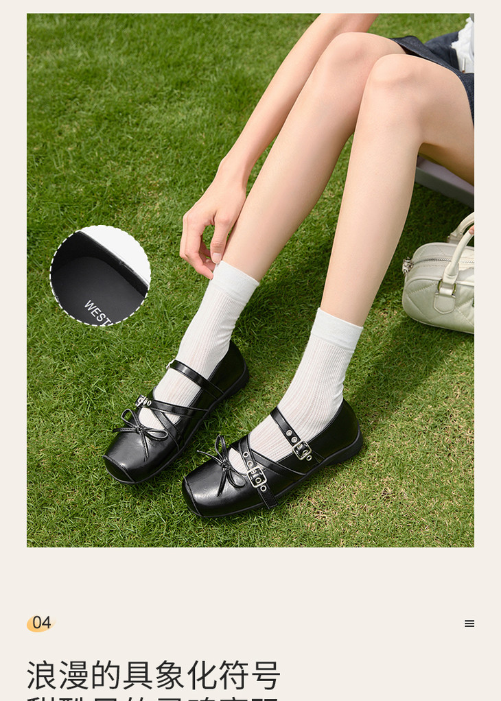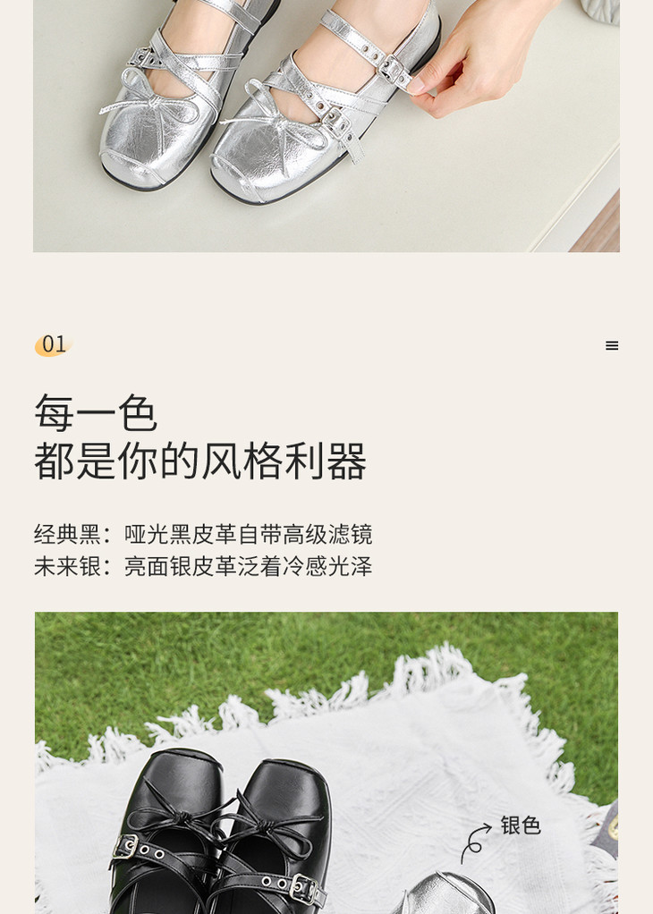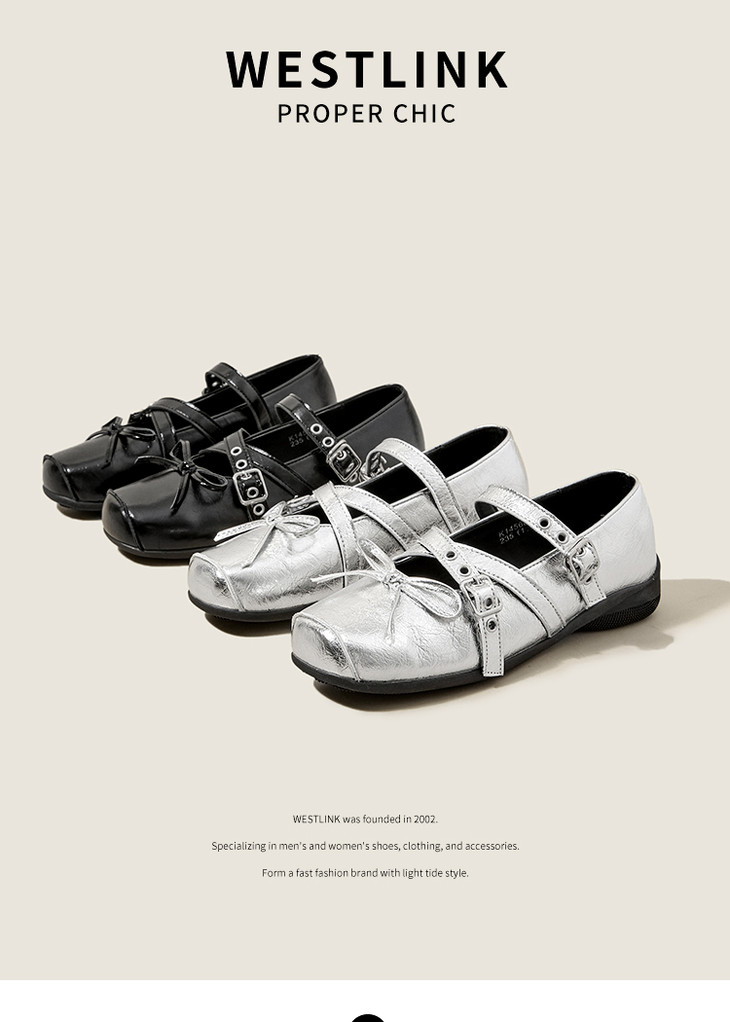 西遇方头芭蕾鞋女新款秋季铆钉蝴蝶结运动软底银色玛丽珍单鞋K1456899