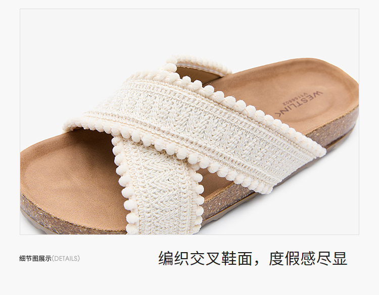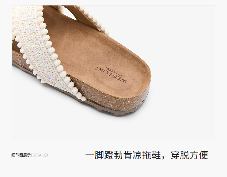 西遇外穿凉拖鞋女夏季新款复古民族风配裙子勃肯凉鞋平底拖鞋V1156802