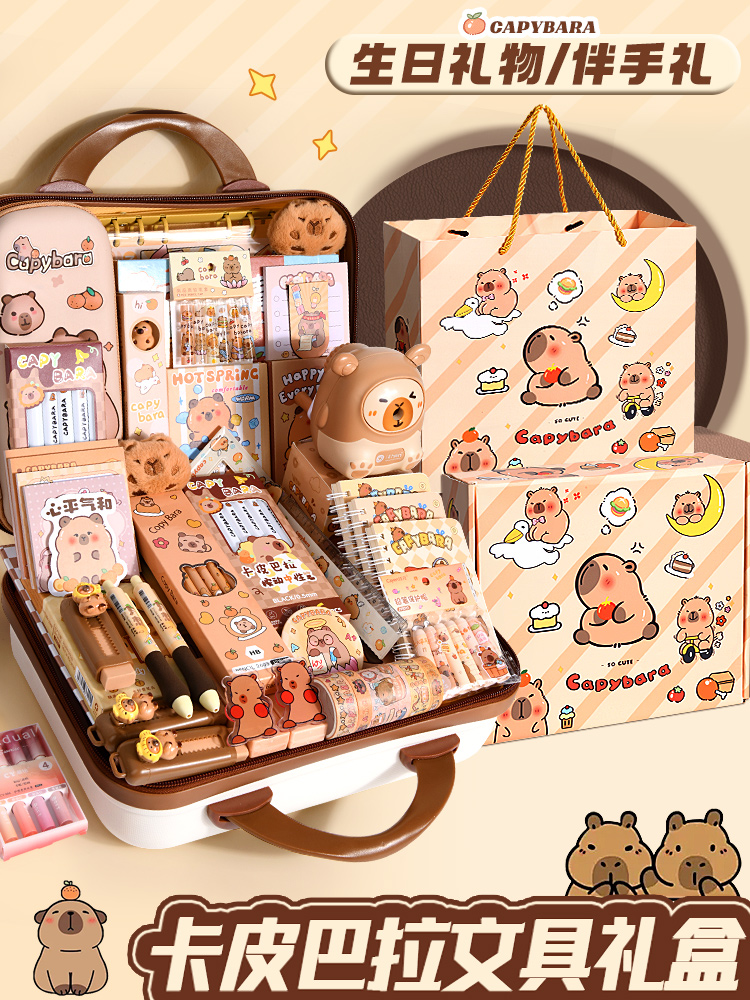 卡皮巴拉文具套装学习用品高颜值生日礼盒小学生礼物开学文具大礼包豪华套装