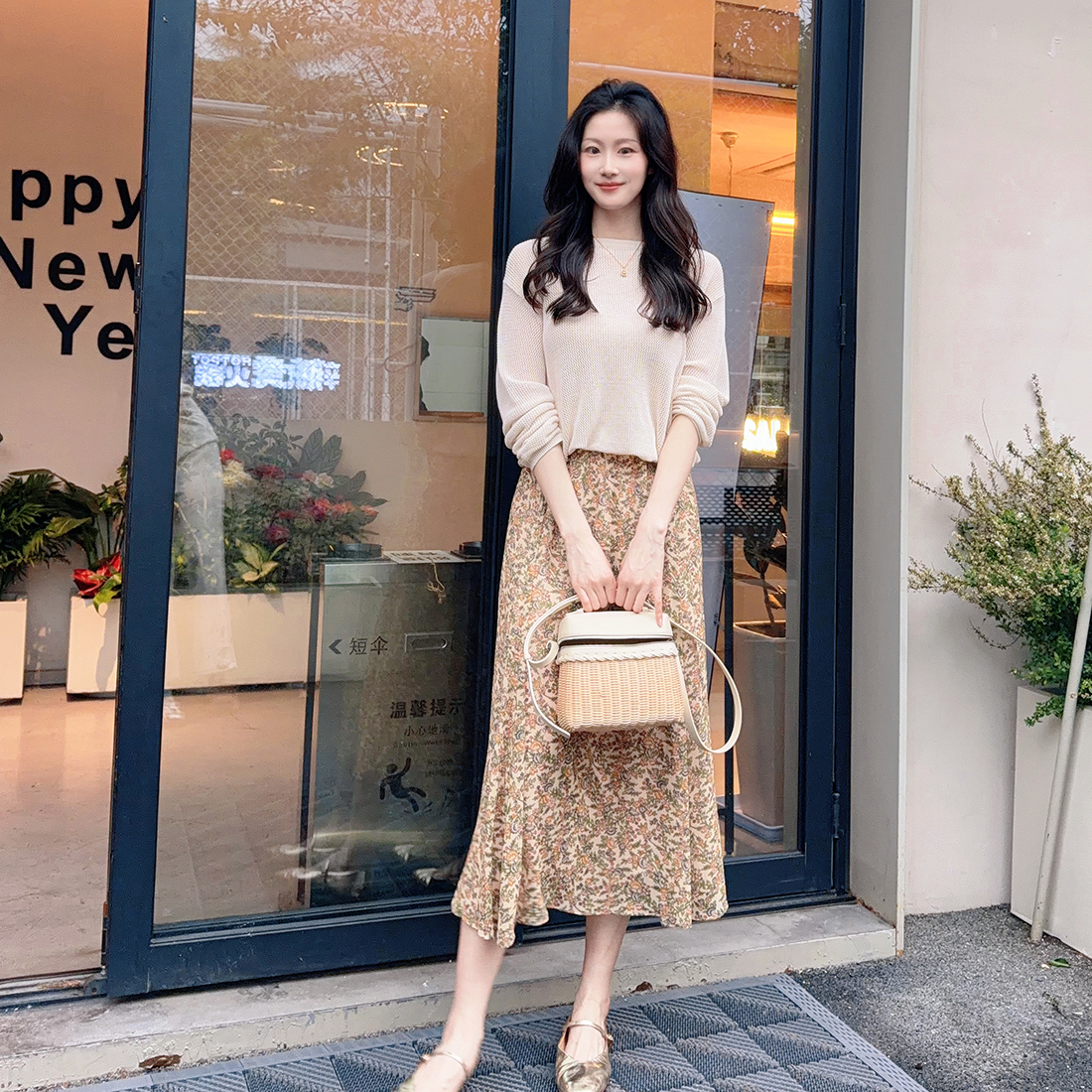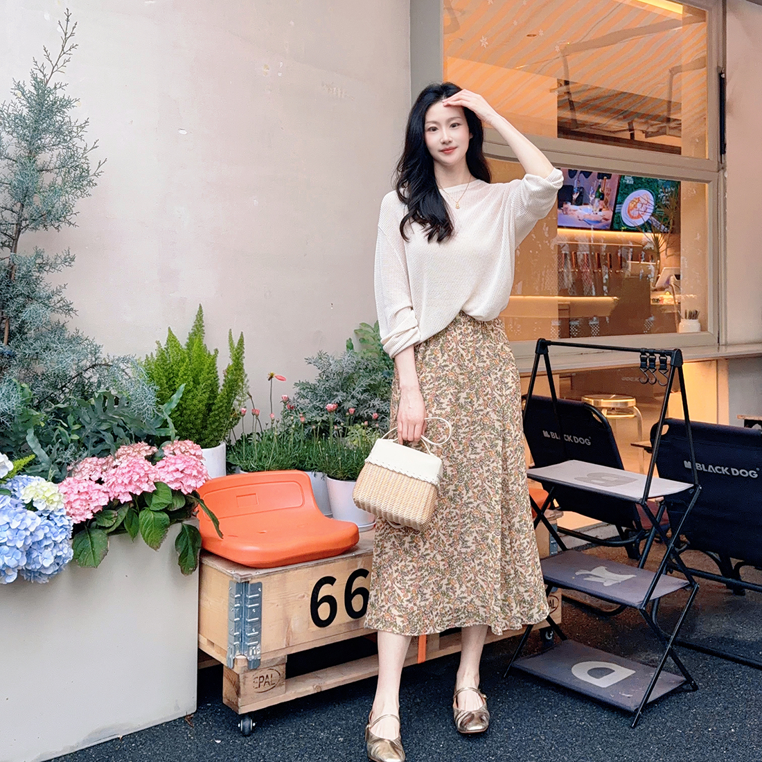 火桐hooton铂金系列 暖枝 双层真丝乔其半裙