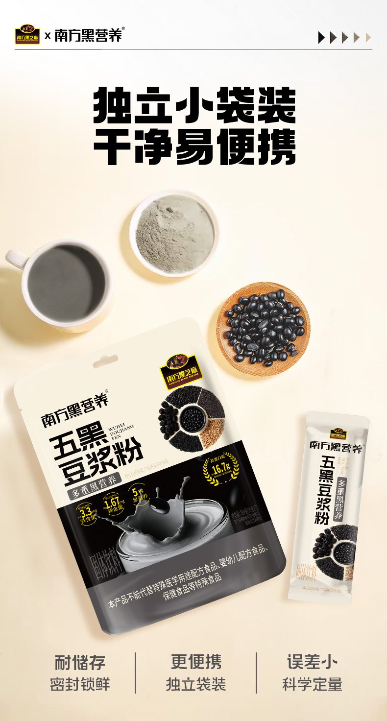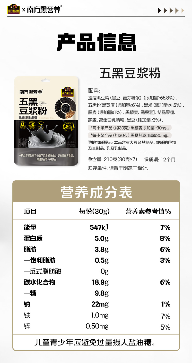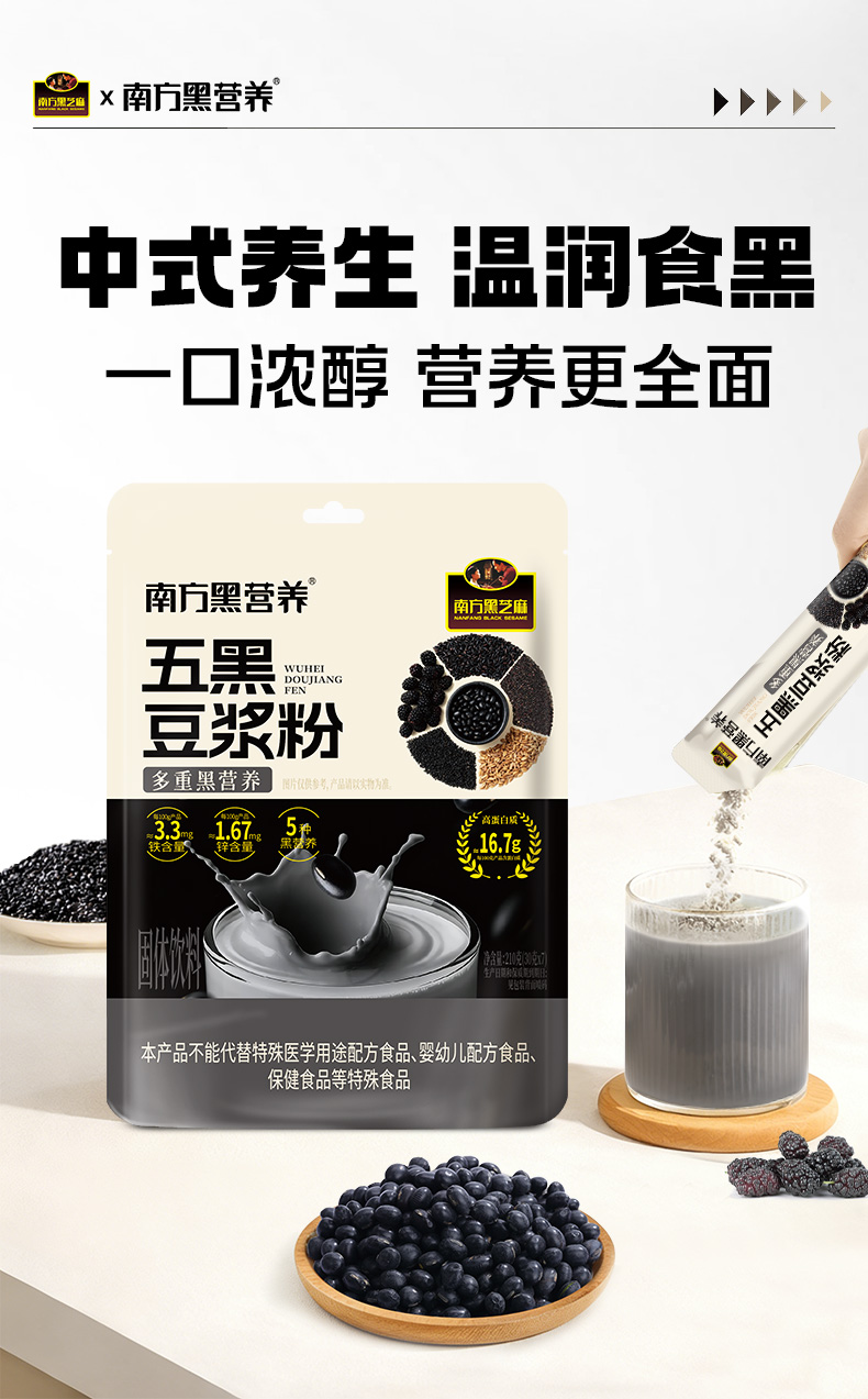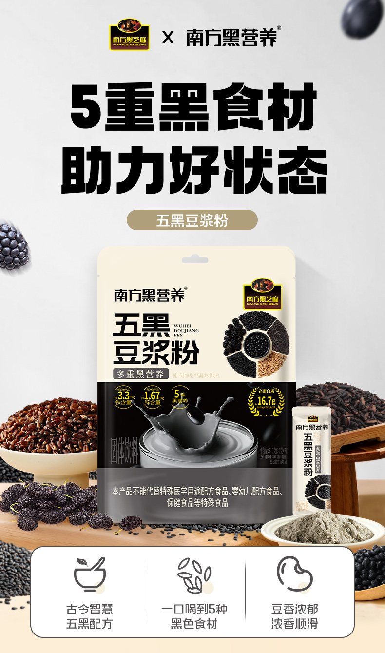 【品牌直营】新品上市 南方黑芝麻 五黑豆浆粉210g 同款:买3赠1,买5赠2!