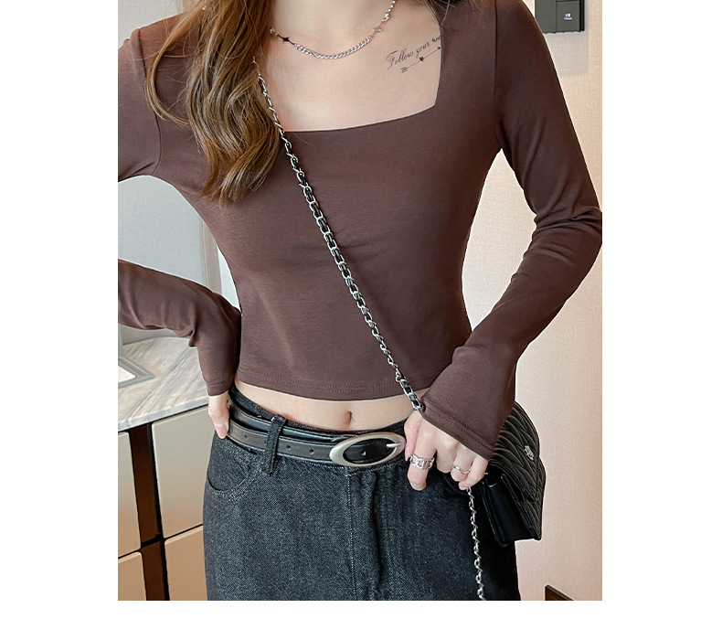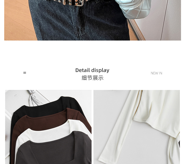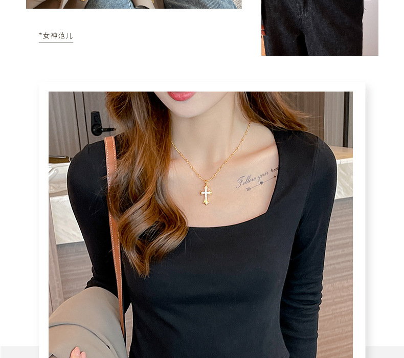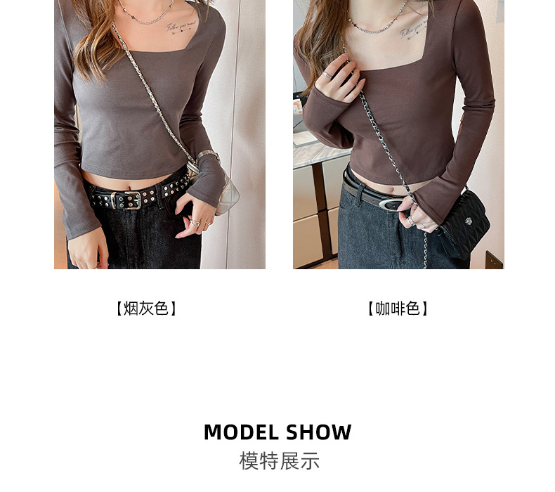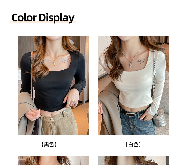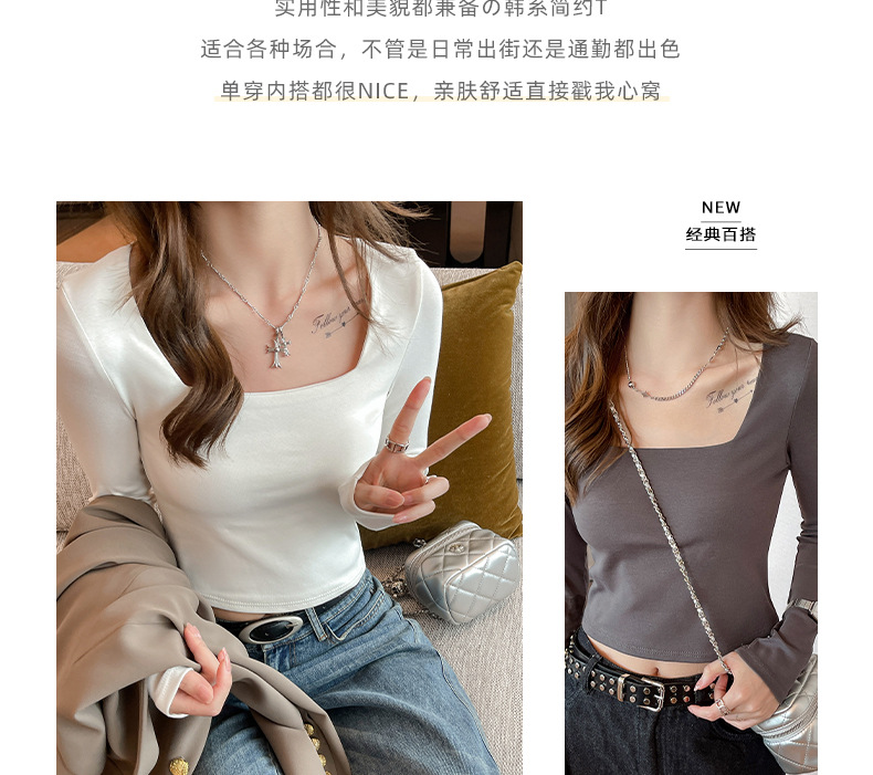 春秋冬季方领显瘦正肩打底衫女内搭t恤可外穿高级感长袖上衣