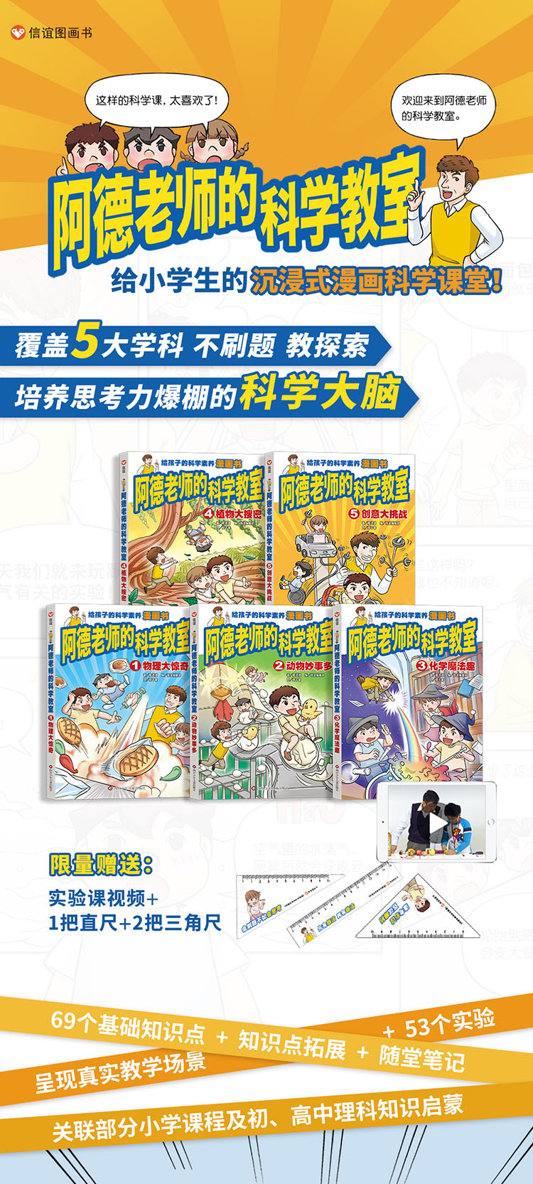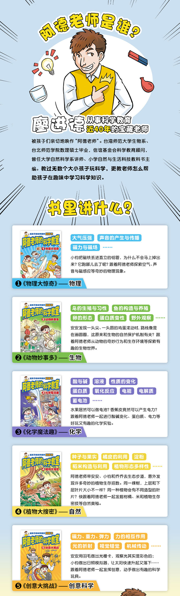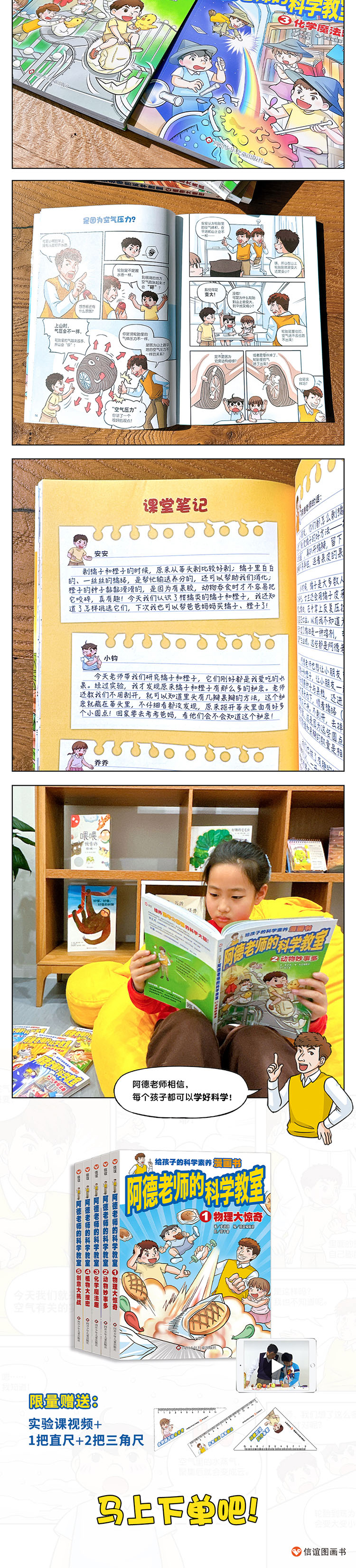 《阿德老师的科学教室》全5册 6-12岁 覆盖物理、生物、化学、自然、创意科学5大学科,轻松学做53个实验,培养思考力爆棚的科学大脑!