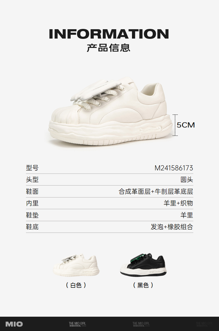 MIO米奥春季休闲板鞋贝壳圆头时尚溶解鞋小众厚底小白鞋女M241586173