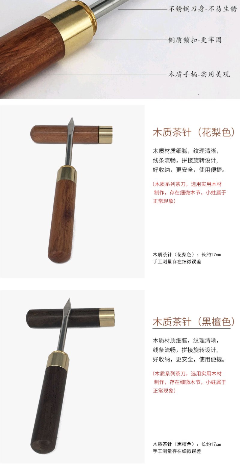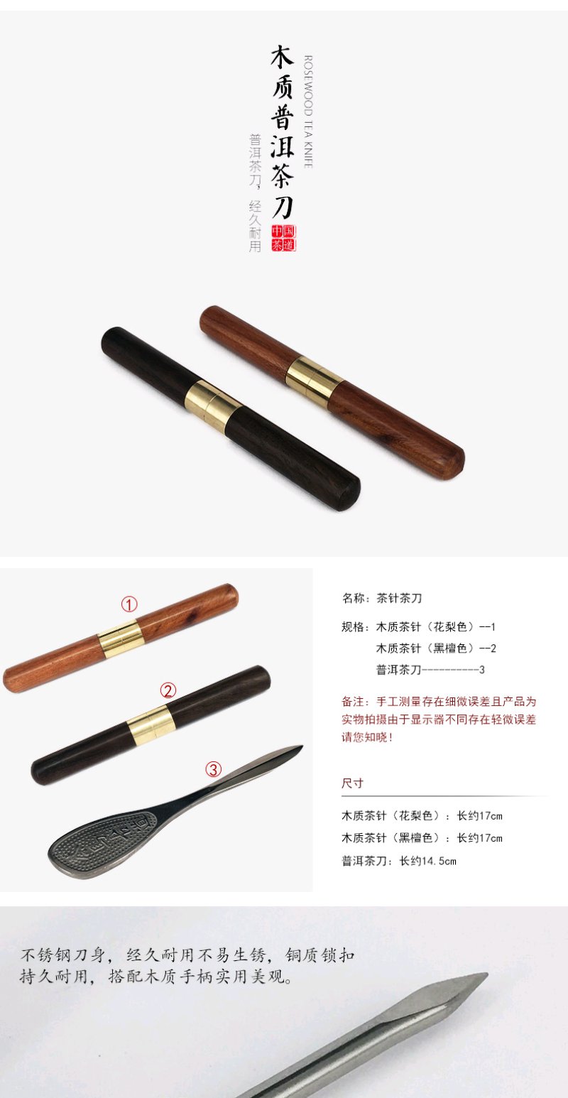 红木茶针黑檀木色花梨木色茶针茶刀普洱茶锥茶刀茶道不锈钢茶刀撬茶用