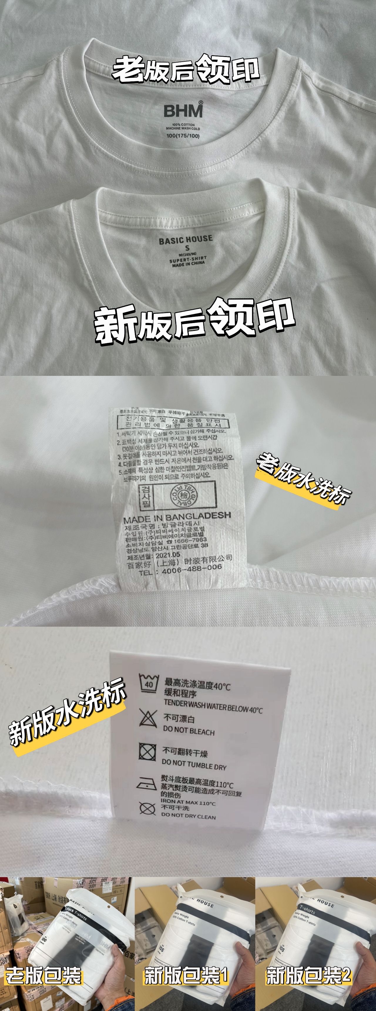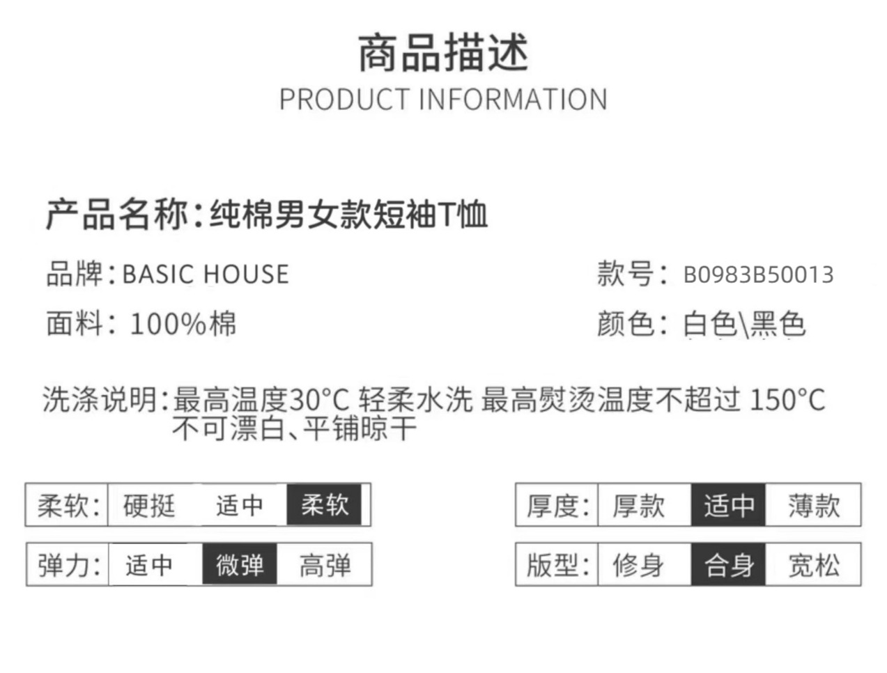 百家好BASIC HOUSE 男女款纯棉短袖T恤(3件装)1组