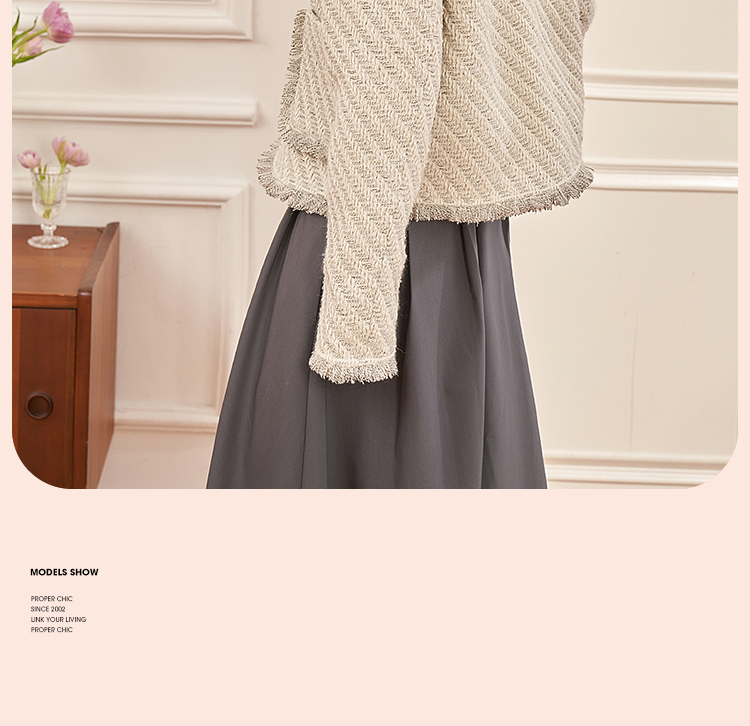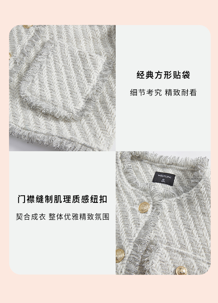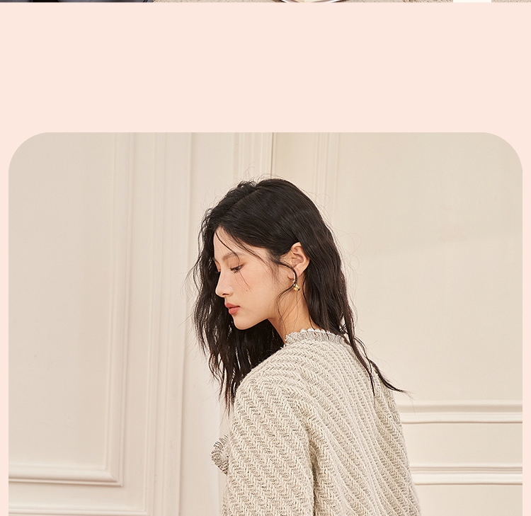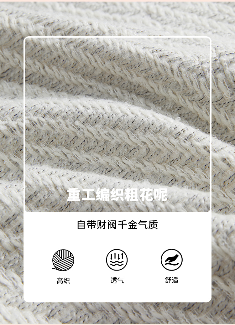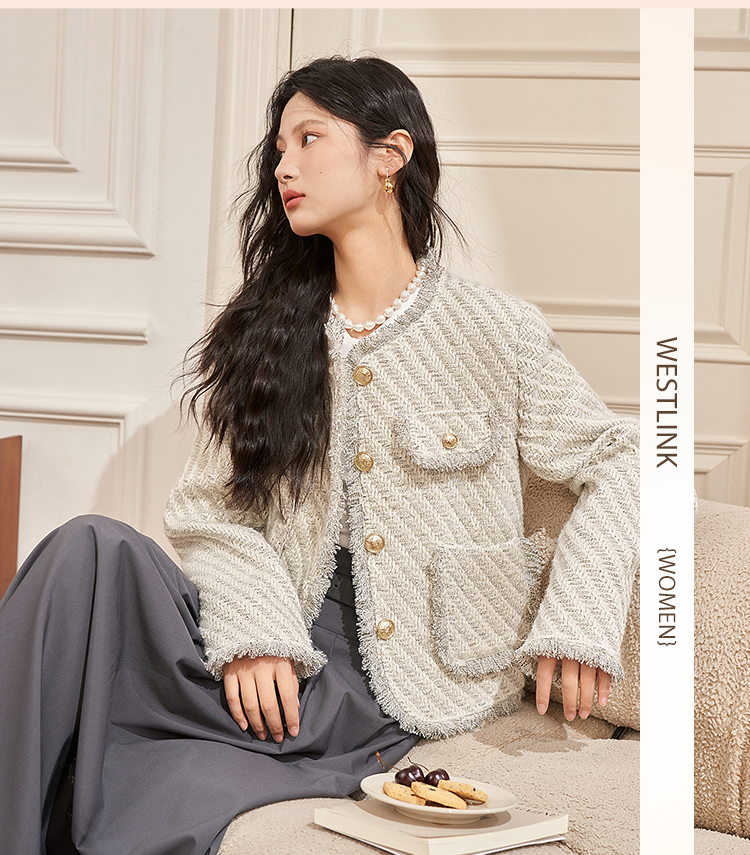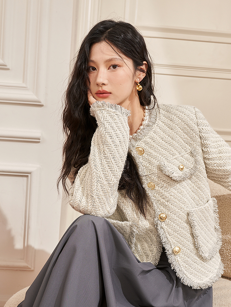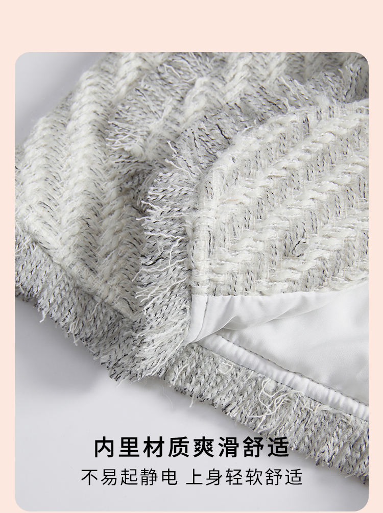 西遇法式小香风外套女新款名媛风粗花呢编织毛边短开衫D1938261