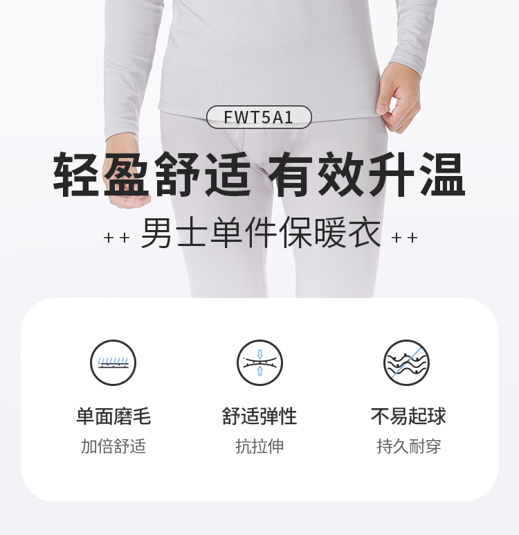都市丽人都市锋尚保暖衣舒暖单件上衣热可可2.0中厚男士保暖衣发热纤维单件FWT5A1