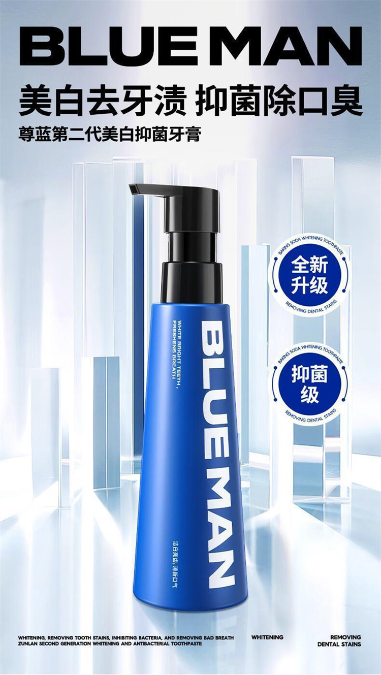 【自营】尊蓝(PRIME BLUE)小苏打美白牙膏绿茶味清新口气抑菌去牙黄去牙渍按压式200g