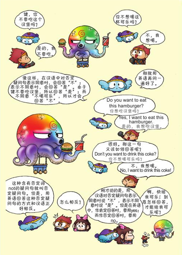 最初,当我说要以漫画的形式编一套英语语法书时,很多人用不可思议的眼神打量我。作为一名大学英语教授,我不编大学英语教材,却要编一套给孩子看的漫画书,这让他们很惊讶。而且,漫画书首先要有趣,漫画形式的英语语法书更不能是生硬的语法讲解,这也是他们担心我做不好的地方。