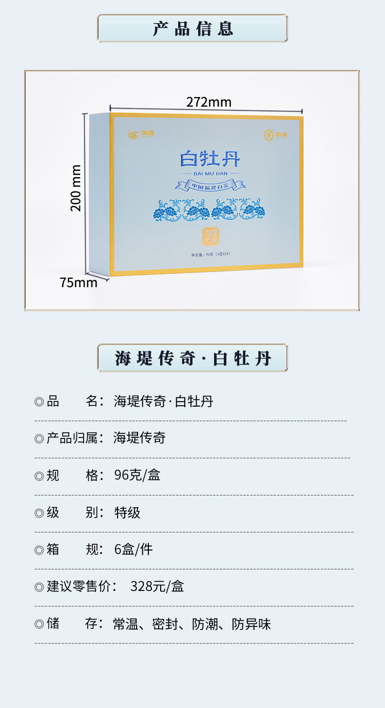 中茶 海堤 白牡丹白茶礼盒 传奇系列96g CTA6731
