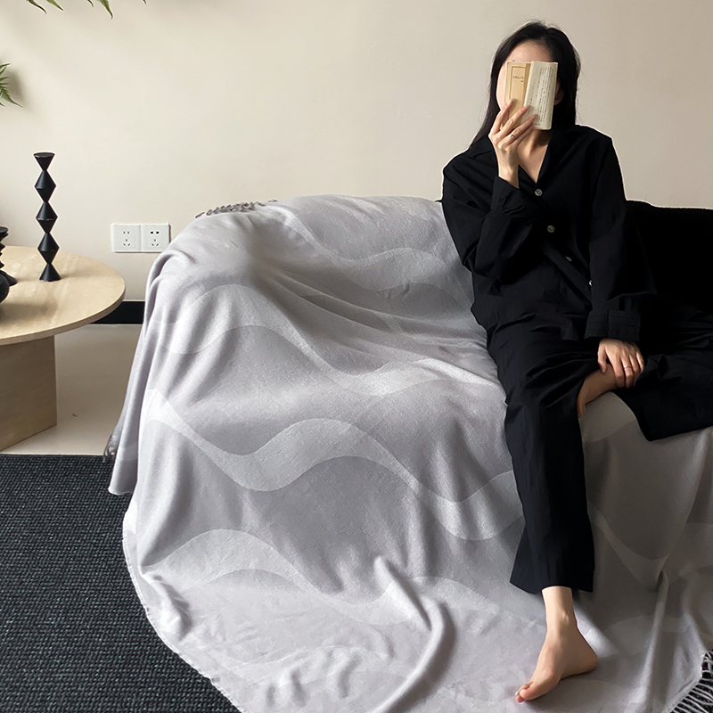 自然醒百搭时尚沙发毯样板间搭毯床尾毯航空流苏毯卧室披肩毯办公室午睡毯轻奢高级感百搭盖毯MT