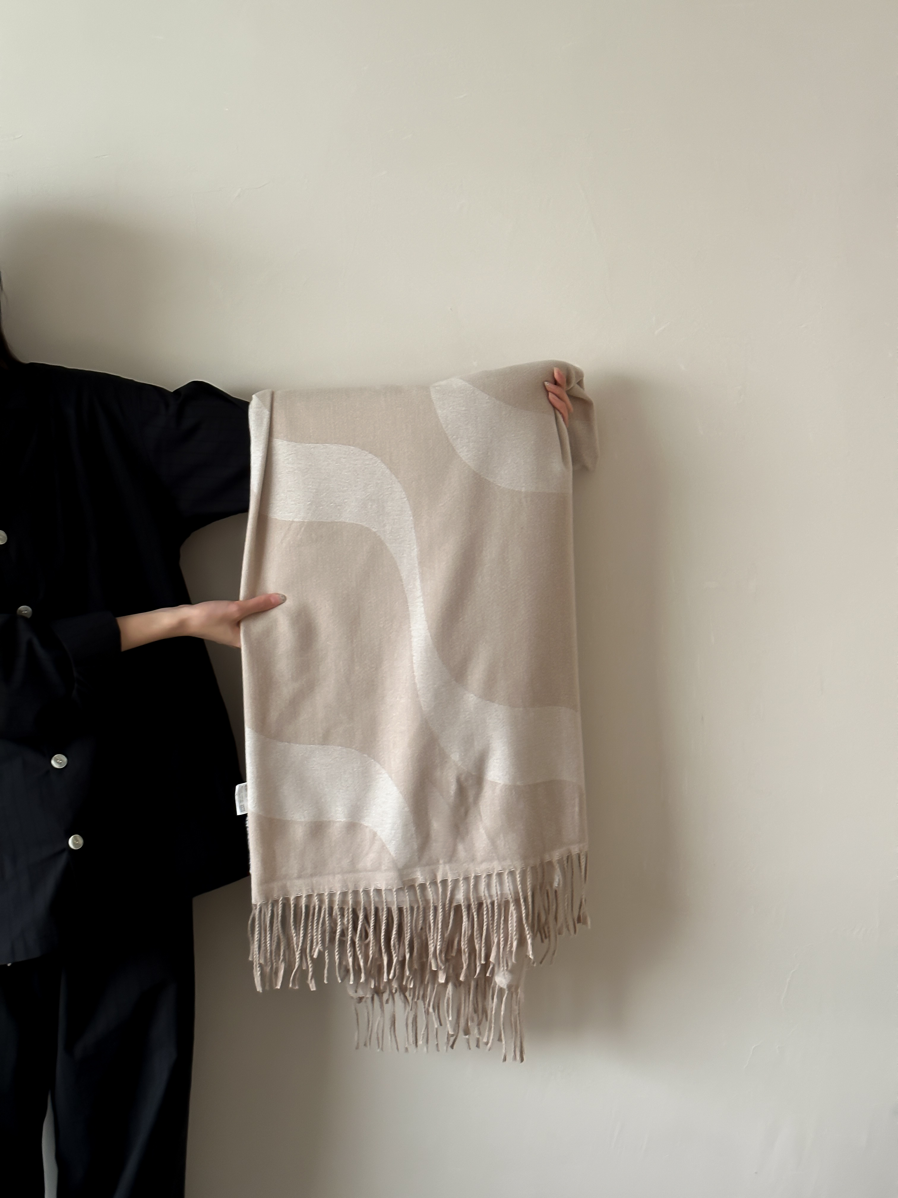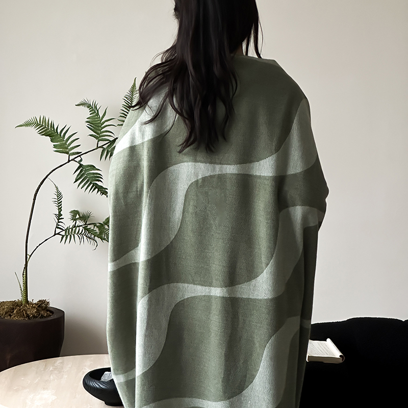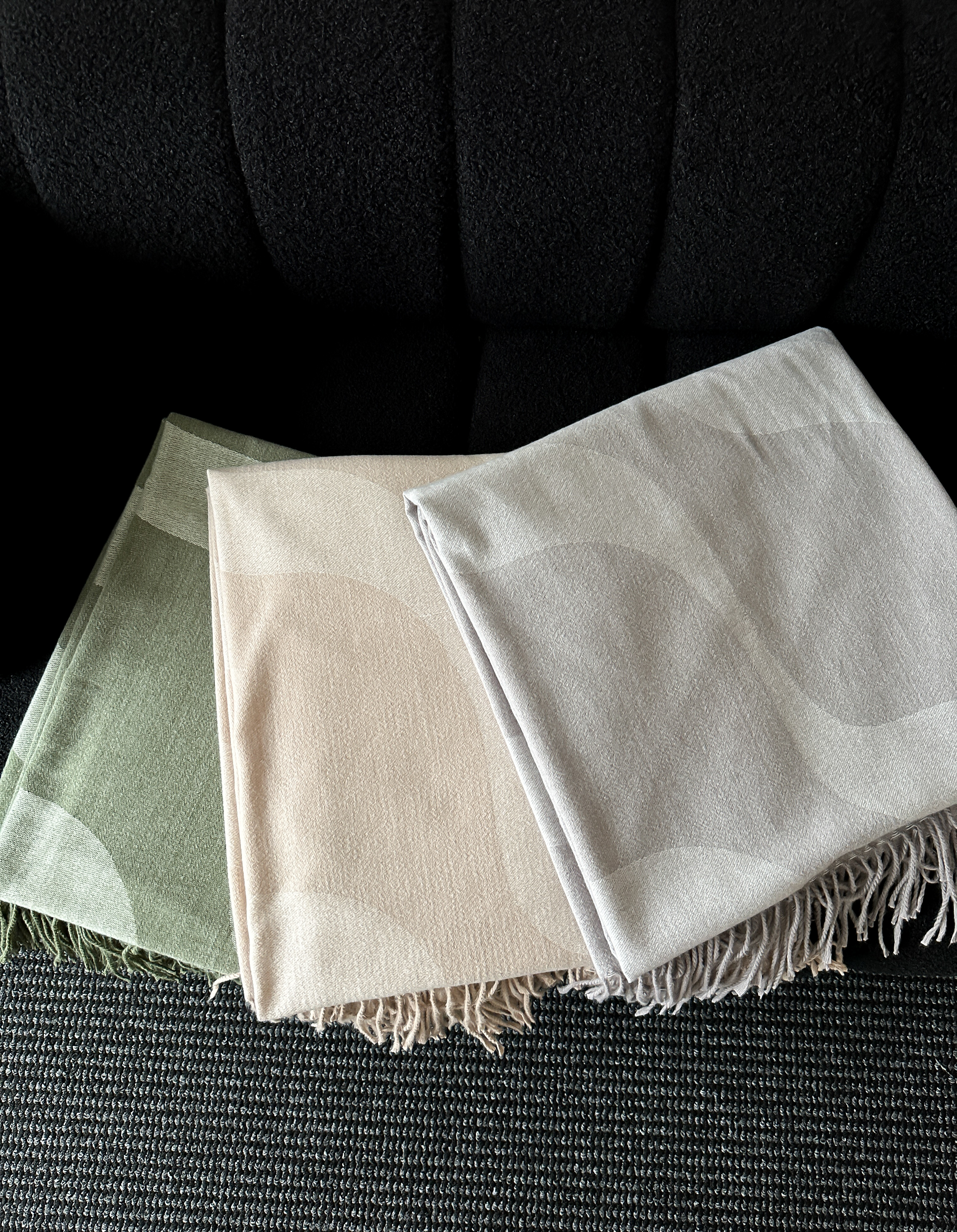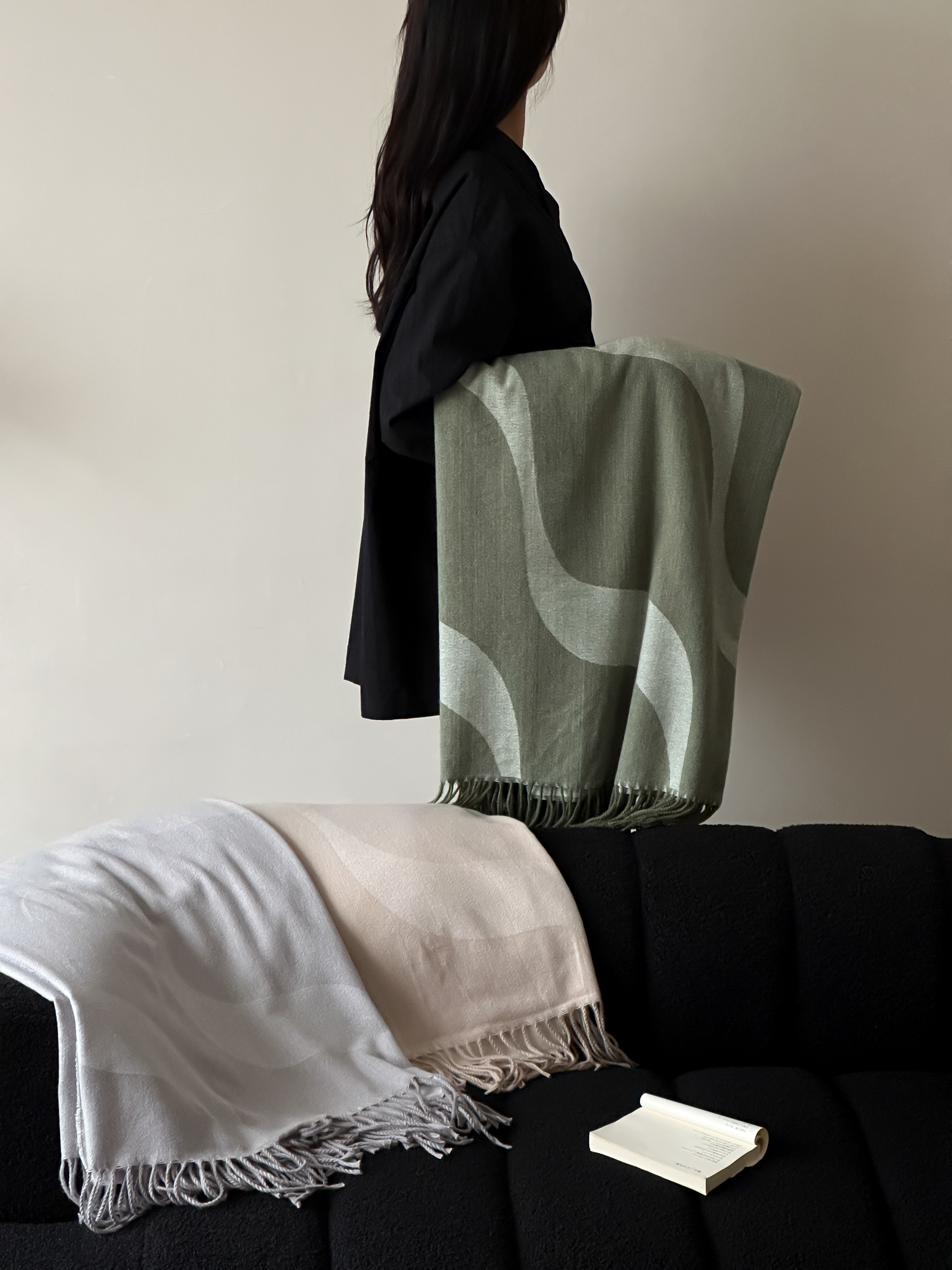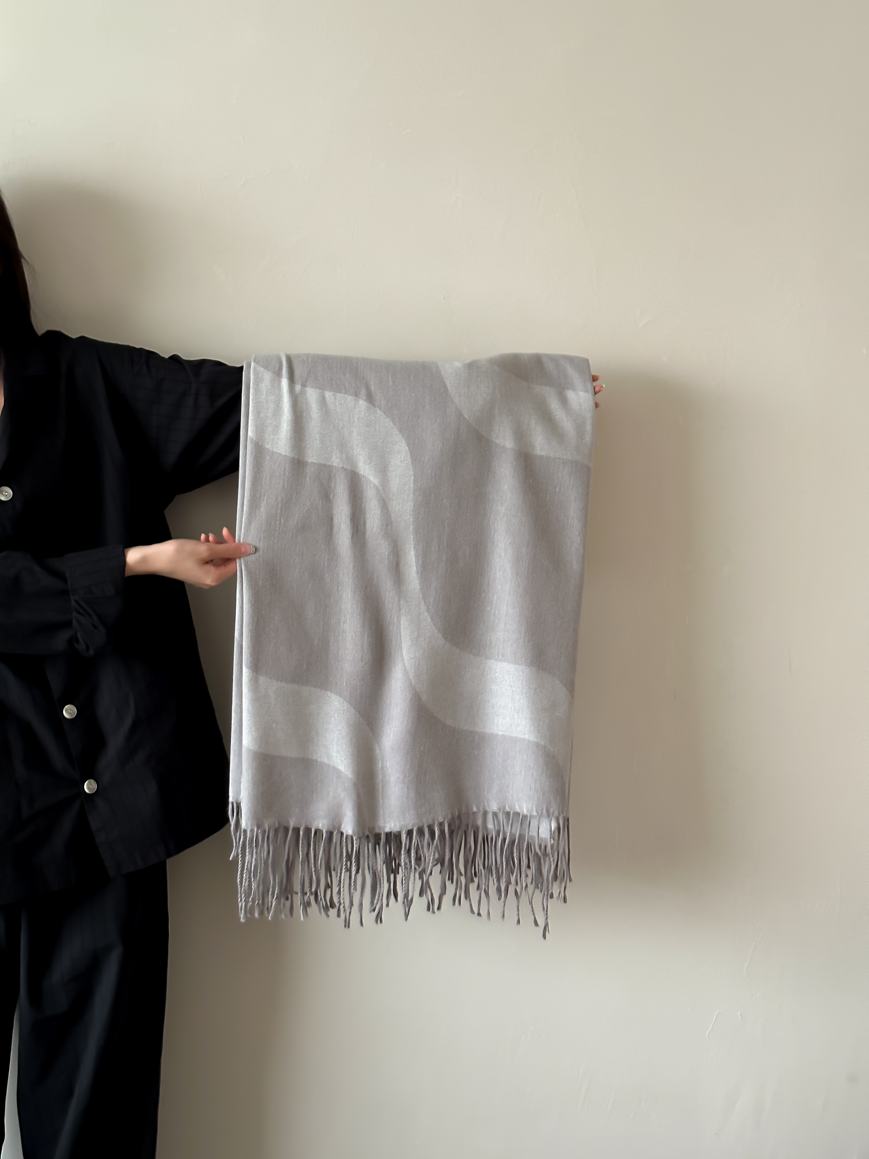 现代简约搭巾,素净雅致,自带花纹,简单流畅,材质触感舒适柔软,流苏有坠感,整体时尚大气。手感蓬松柔软,时时感知生活温度。作为沙发毯,旅行毯,午休毯,床尾毯,满足多场景多用途的需求。