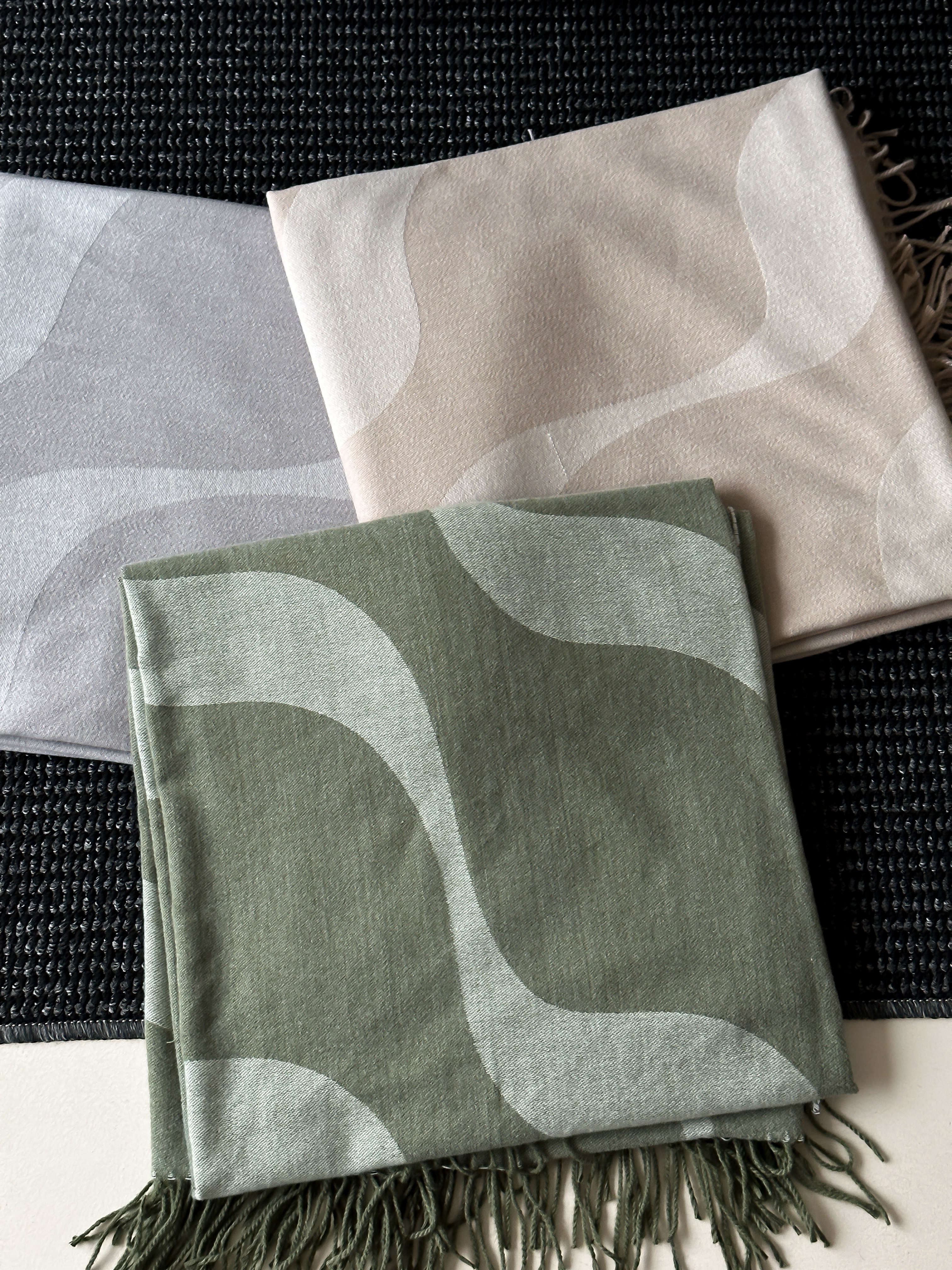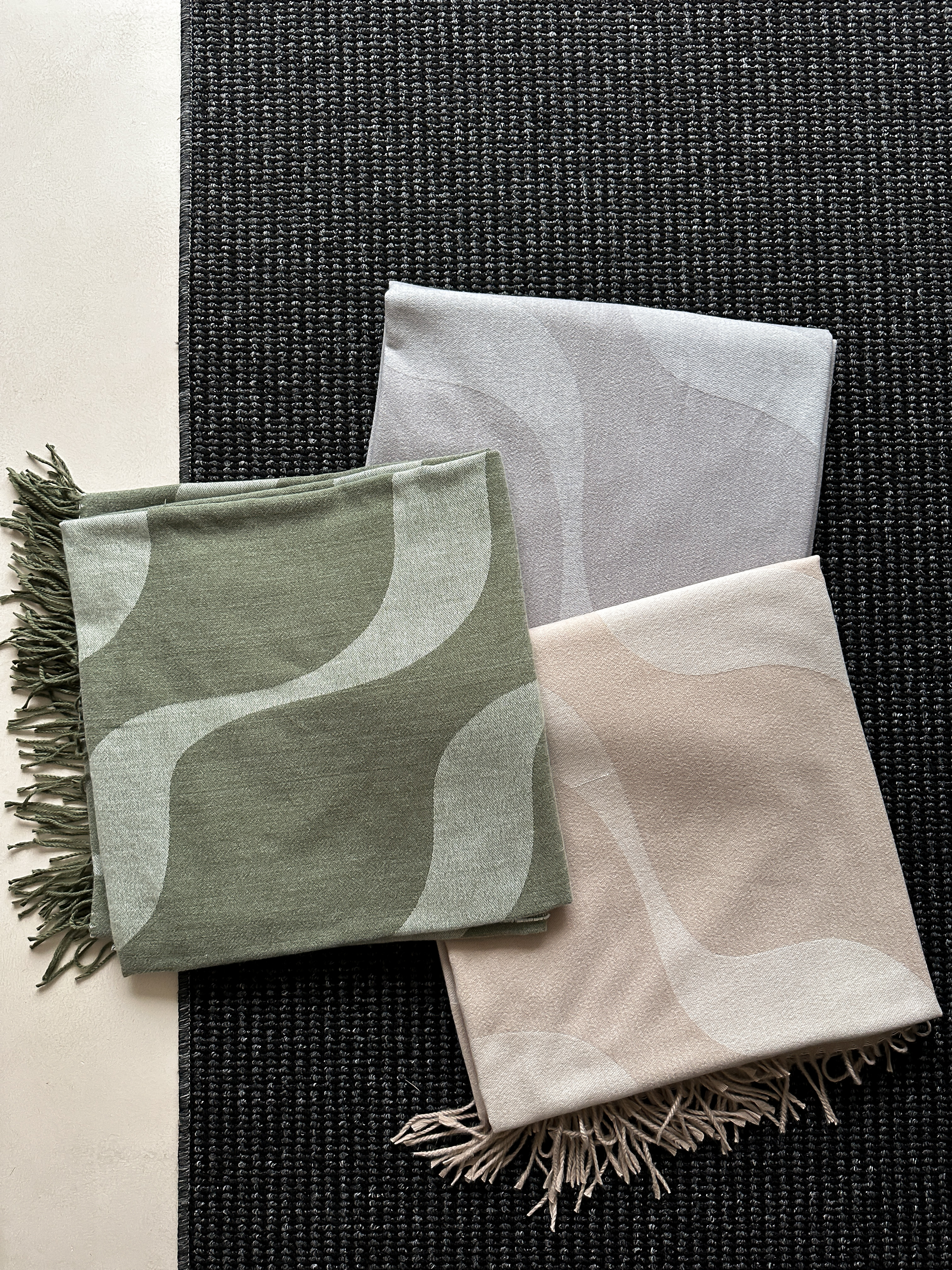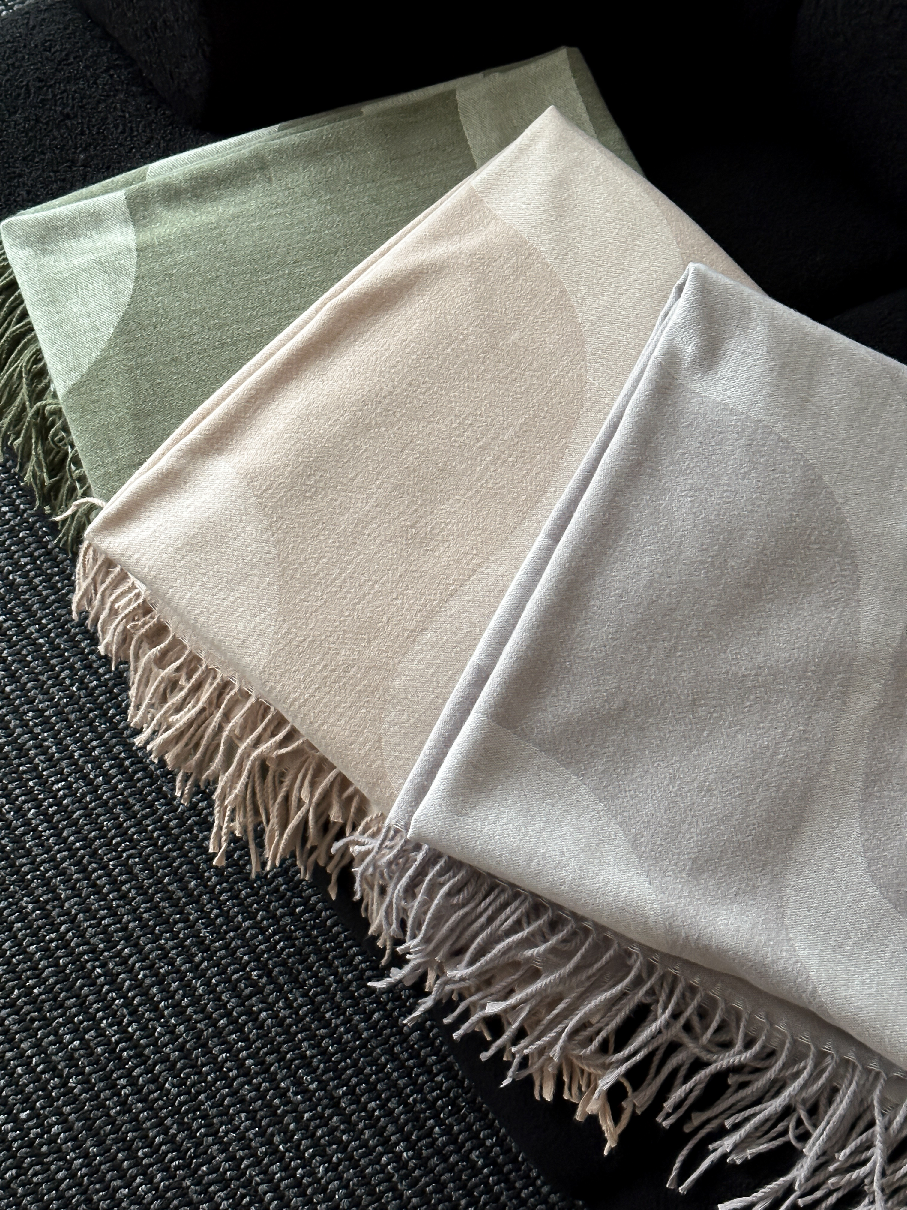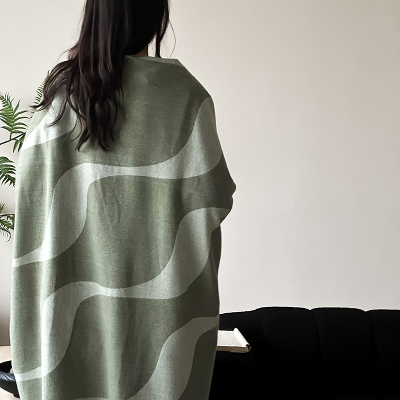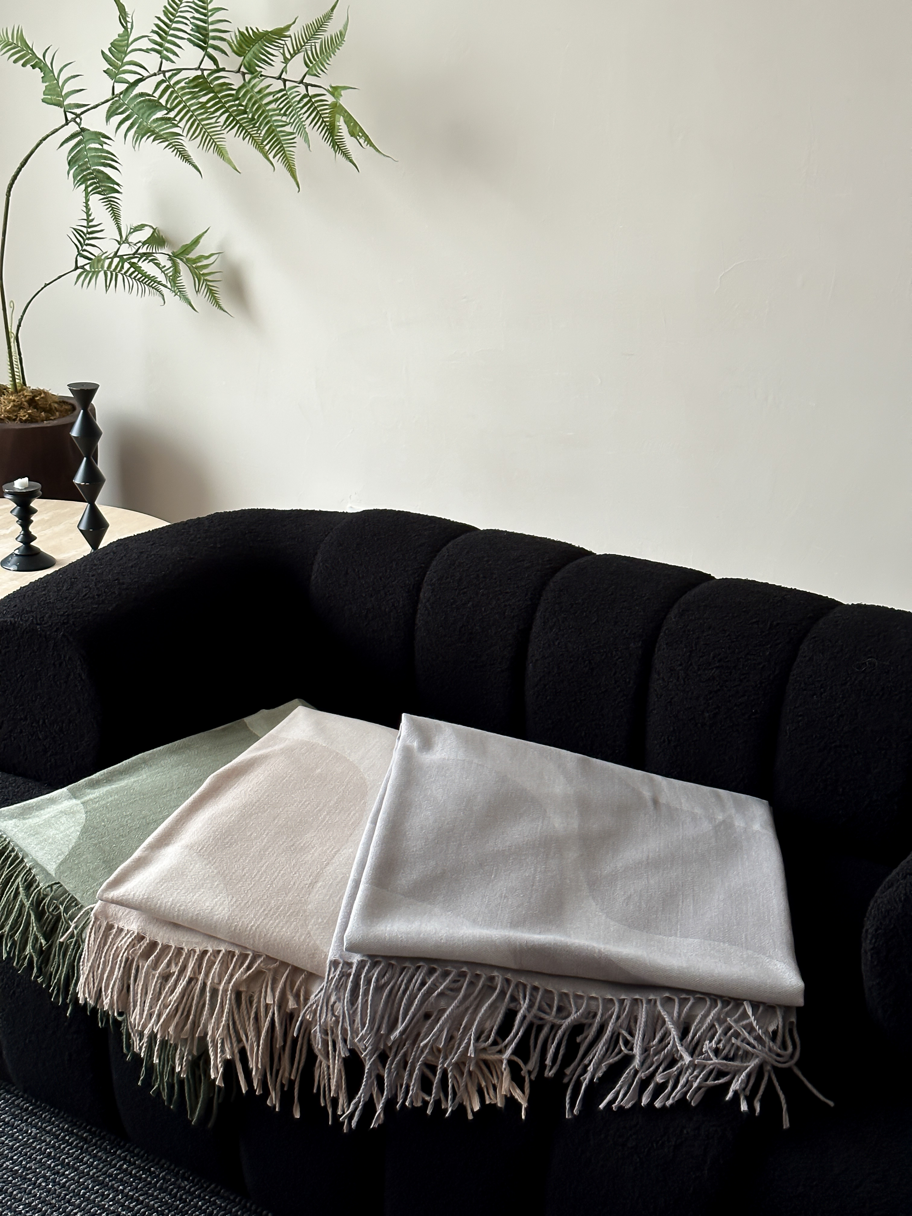 现代简约搭巾,素净雅致,自带花纹,简单流畅,材质触感舒适柔软,流苏有坠感,整体时尚大气。手感蓬松柔软,时时感知生活温度。作为沙发毯,旅行毯,午休毯,床尾毯,满足多场景多用途的需求。