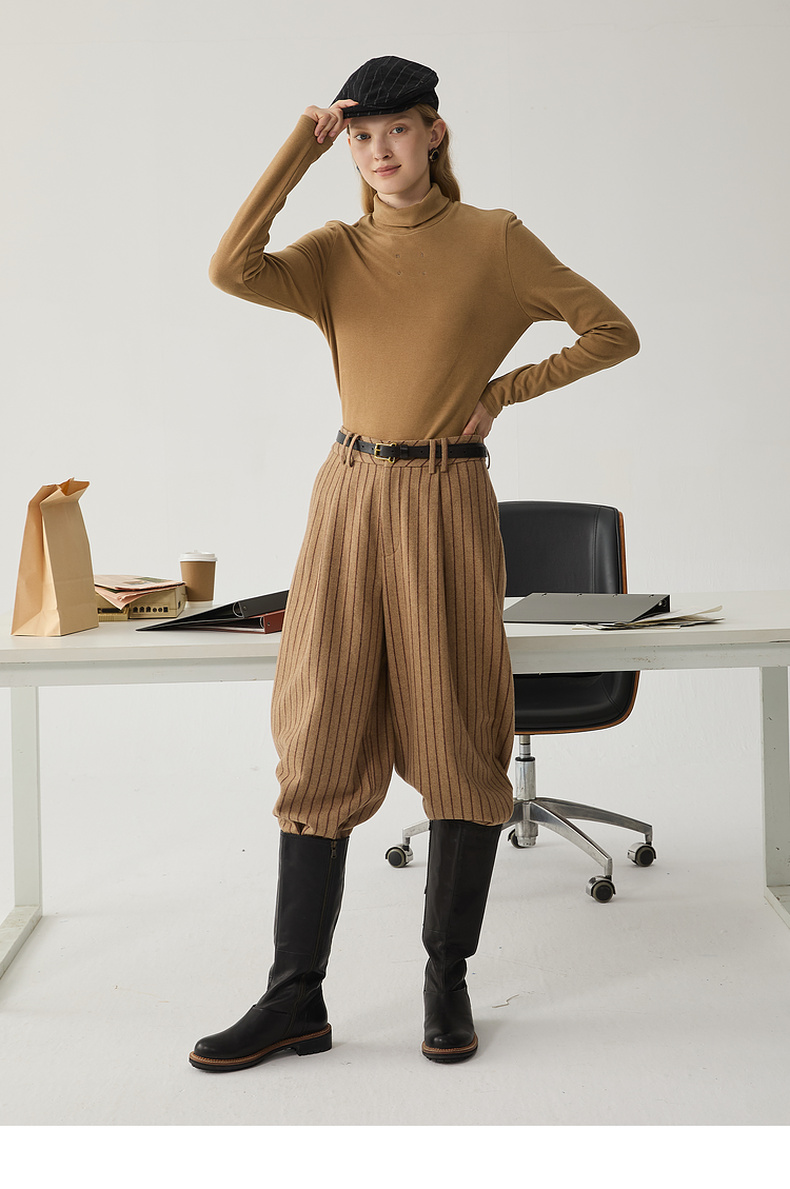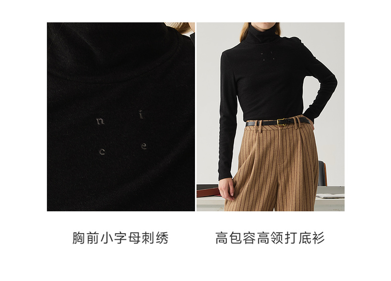 谜底纯色高领T恤长袖2024冬季新品极简风亲肤修身打底衫244MT1608