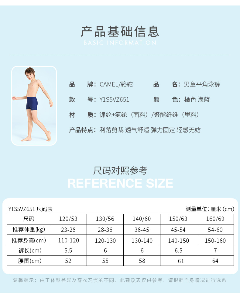 骆驼儿童游泳裤男童游泳馆专用速干专业训练小男孩游泳裤 Y1S5VZ651