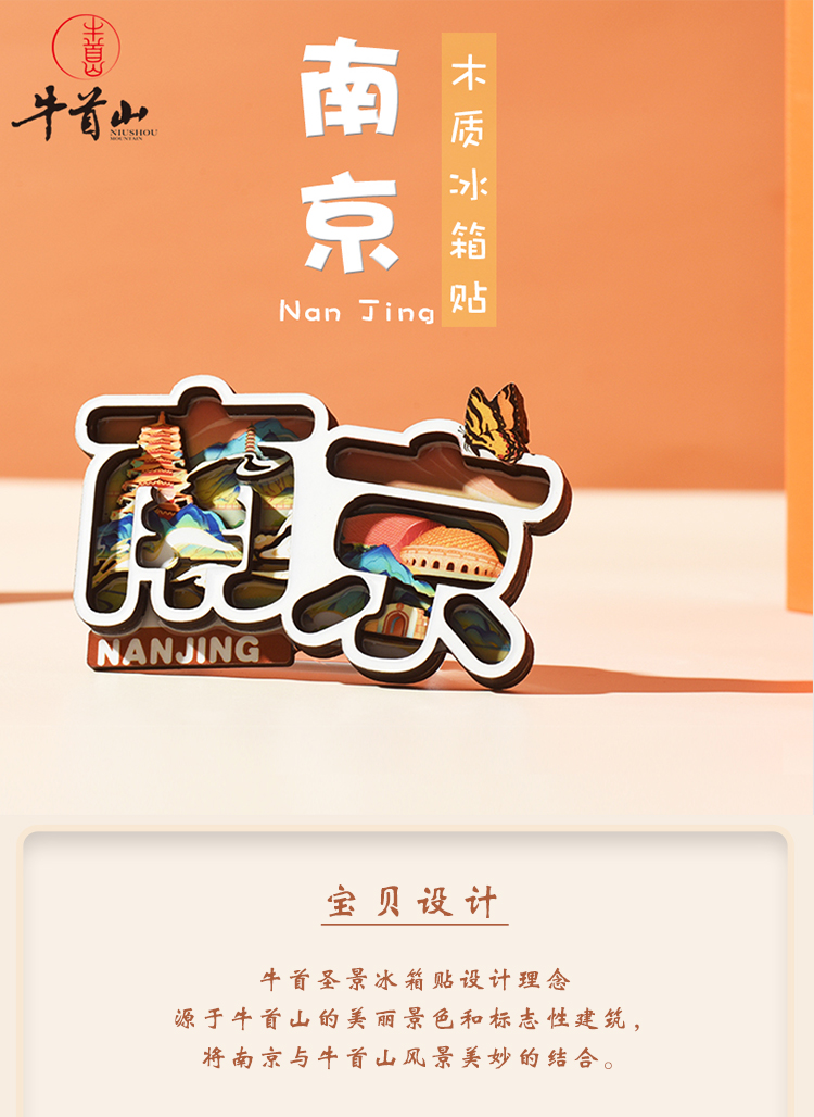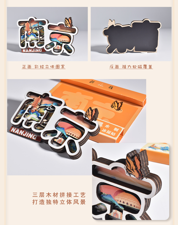 牛首山文创AR冰箱贴立体3d木质卡通大吸力软磁树脂贴南京旅游纪念品